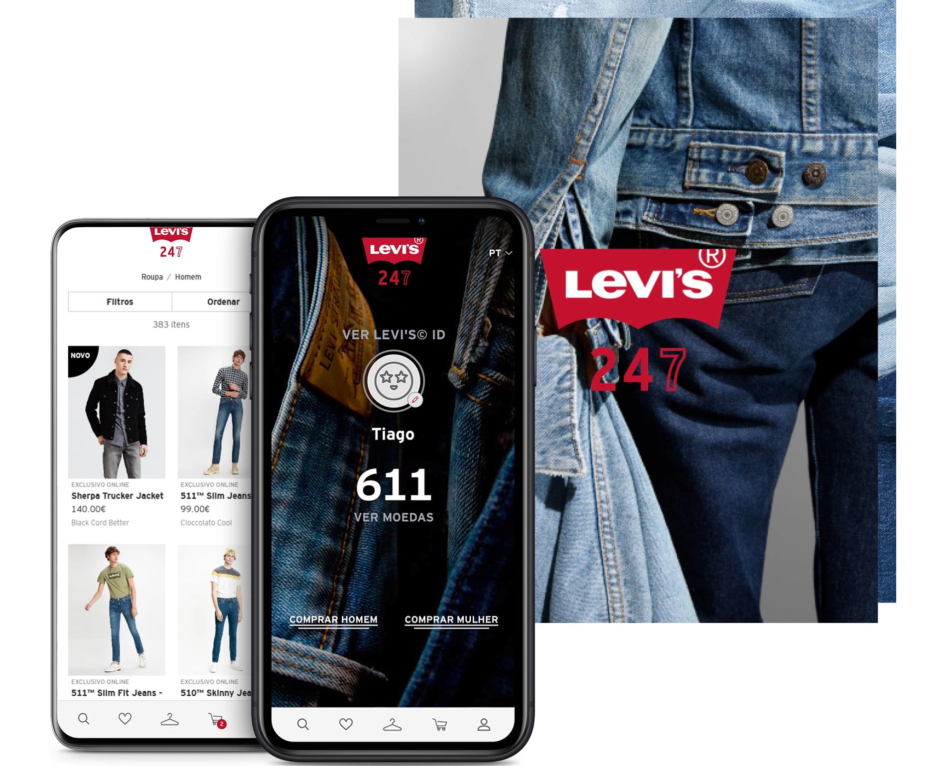 Vives em Levi's®? Torna-te um membro da App Levi's® 247, faz o download da aplicação para teres acesso a conteúdos exclusivos e outras recompensas e ainda acesso antecipado a lançamentos e a promoções.