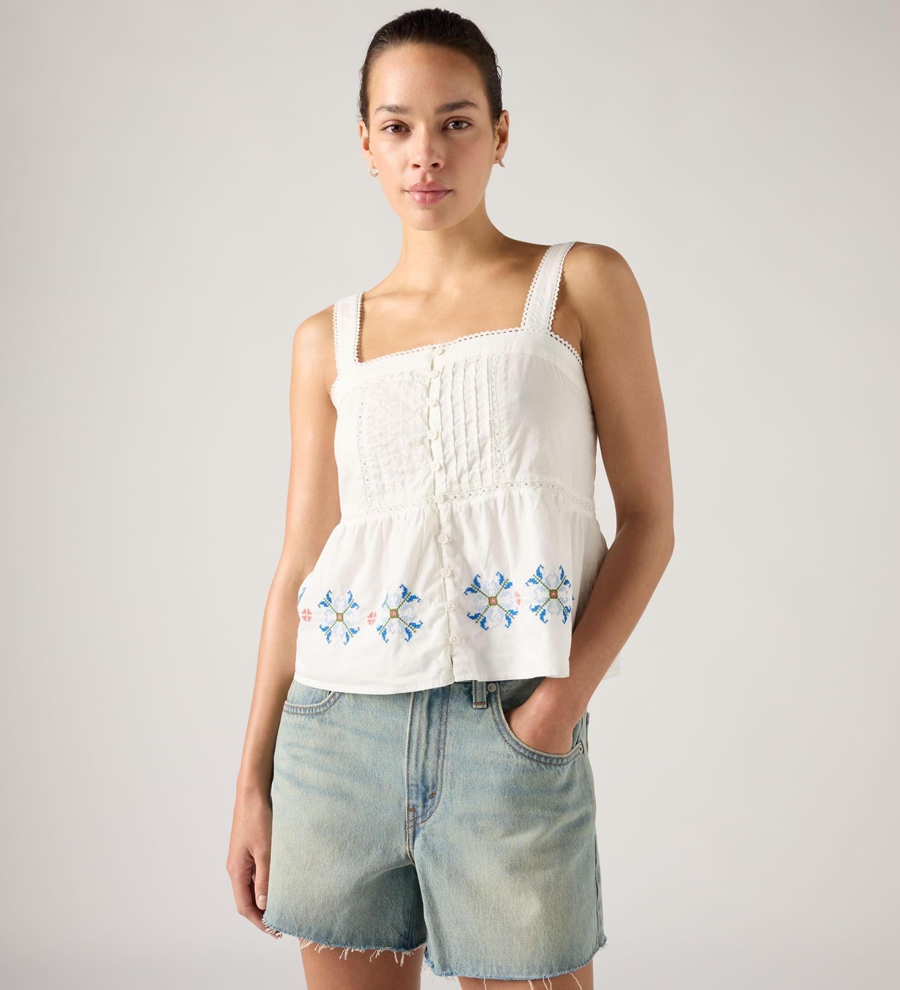 your go-to for everyday polish. We designed our Mimi Blouse with bra-friendly straps, a button-up front and soft cotton.