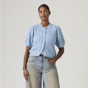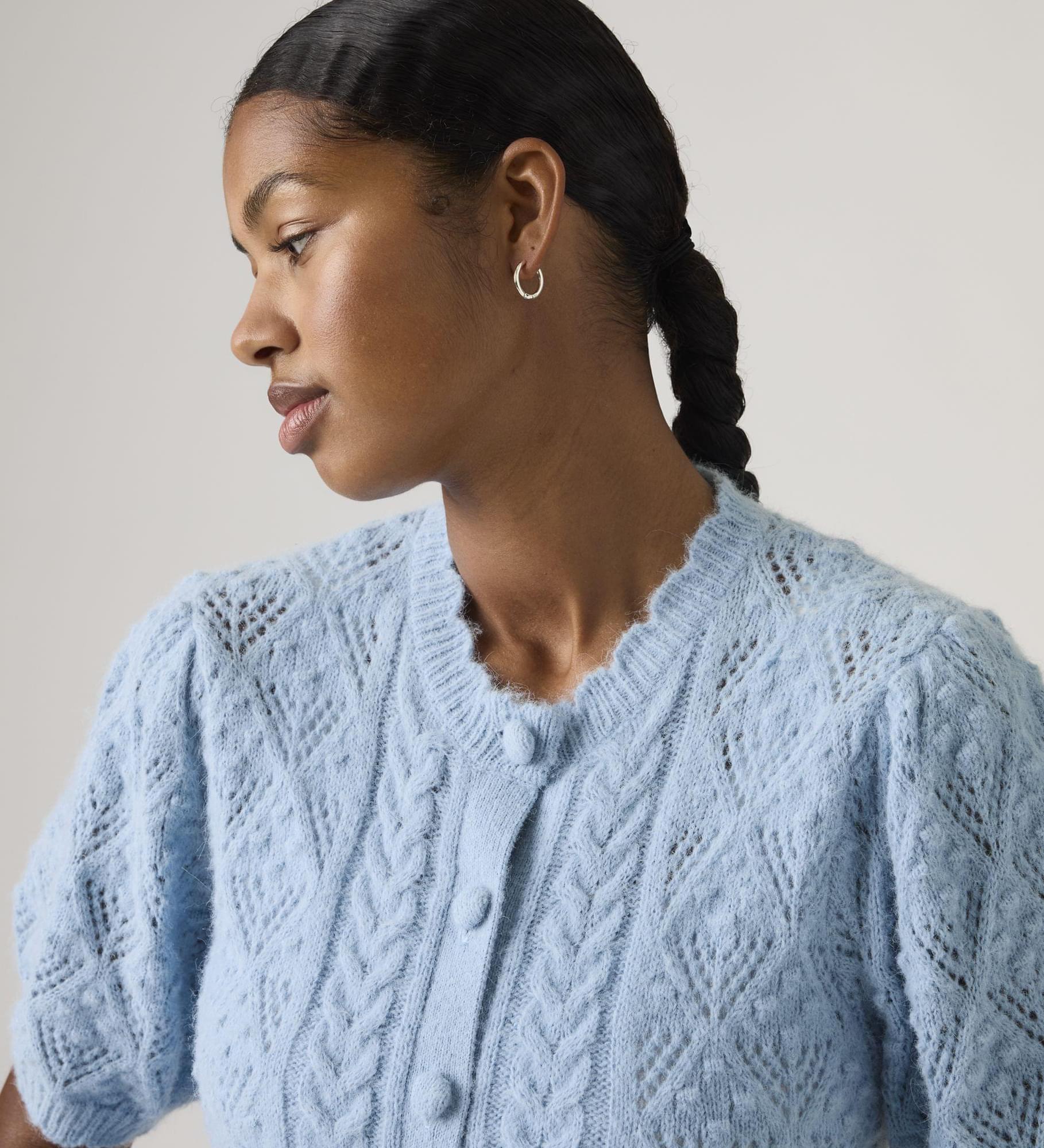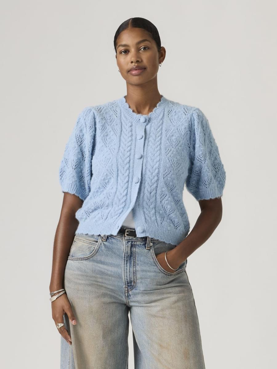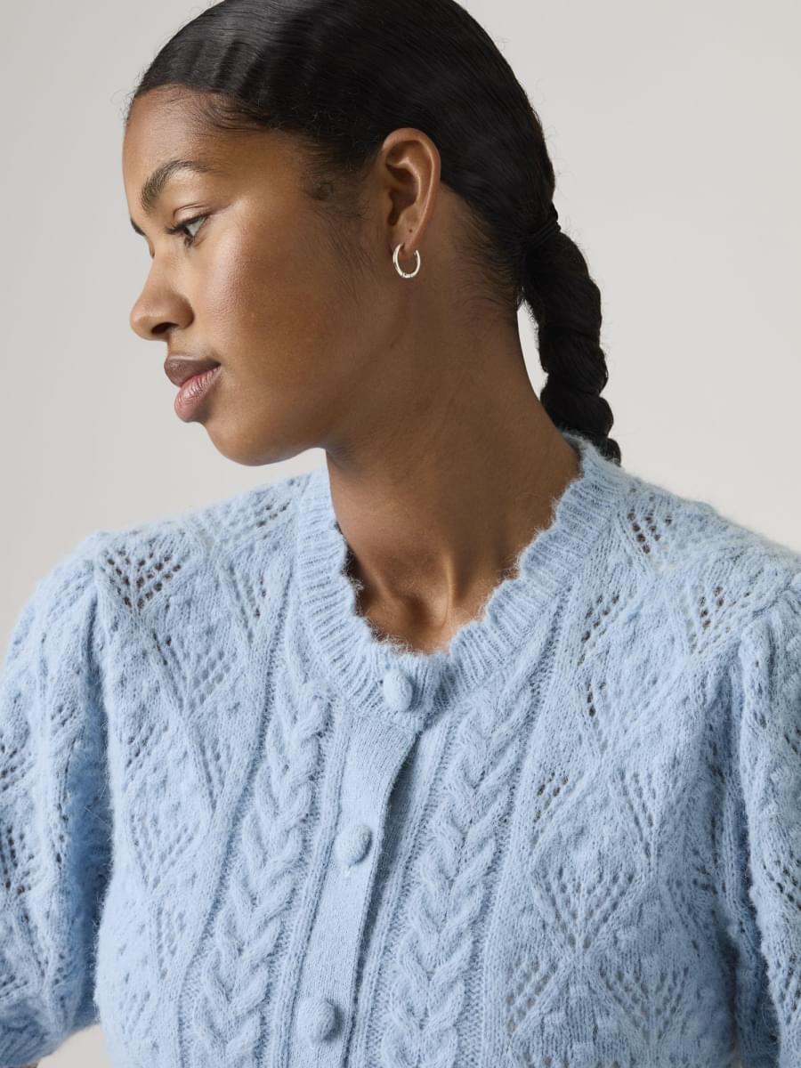 A little '90s, a whole lotta comfortable. Our Pauline Pointelle Short-Sleeve Cardigan is designed with a classic button-up front, a standard fit and soft, delicate pointelle fabric.