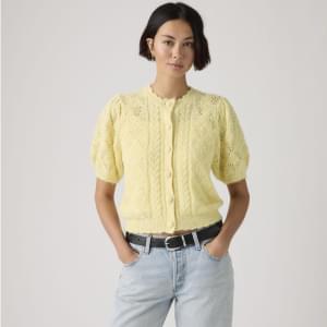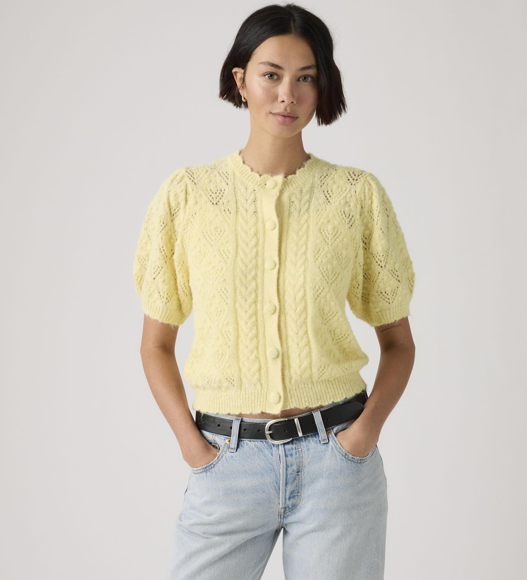 A little '90s, a whole lotta comfortable. Our Pauline Pointelle Short-Sleeve Cardigan is designed with a classic button-up front, a standard fit and soft, delicate pointelle fabric.