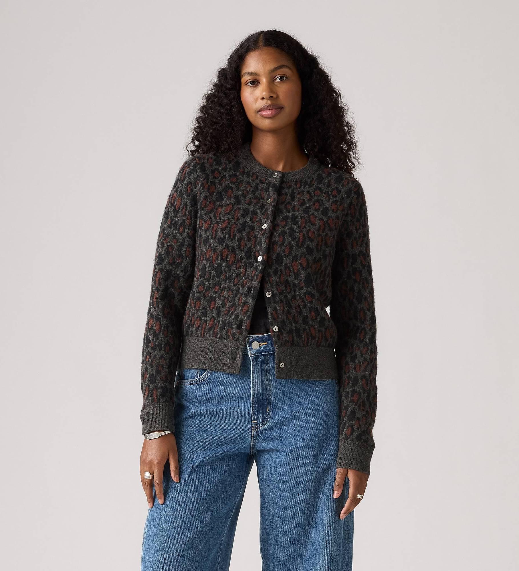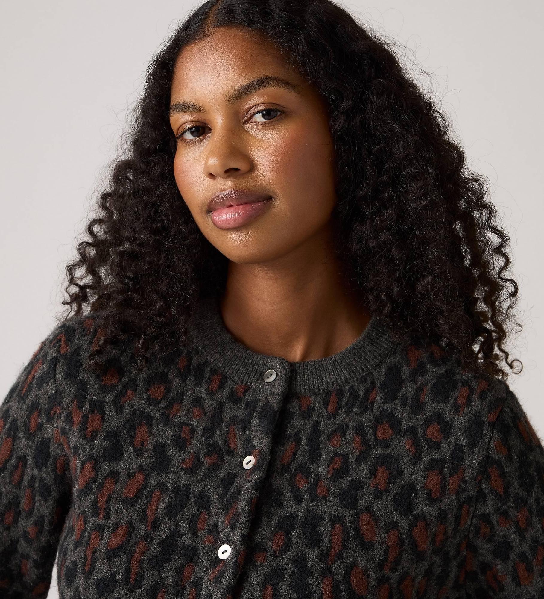The perfect balance of comfort and style. Our Tara Wooly Cardigan features a button-up front, an easy, standard fit and a leopard print.