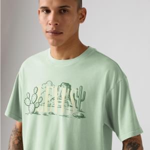 Short on length, big on style. This Graphic Boxy Tee features a classic crew neckline, a just-right relaxed fit and is topped off with a one-of-a-kind graphic design.