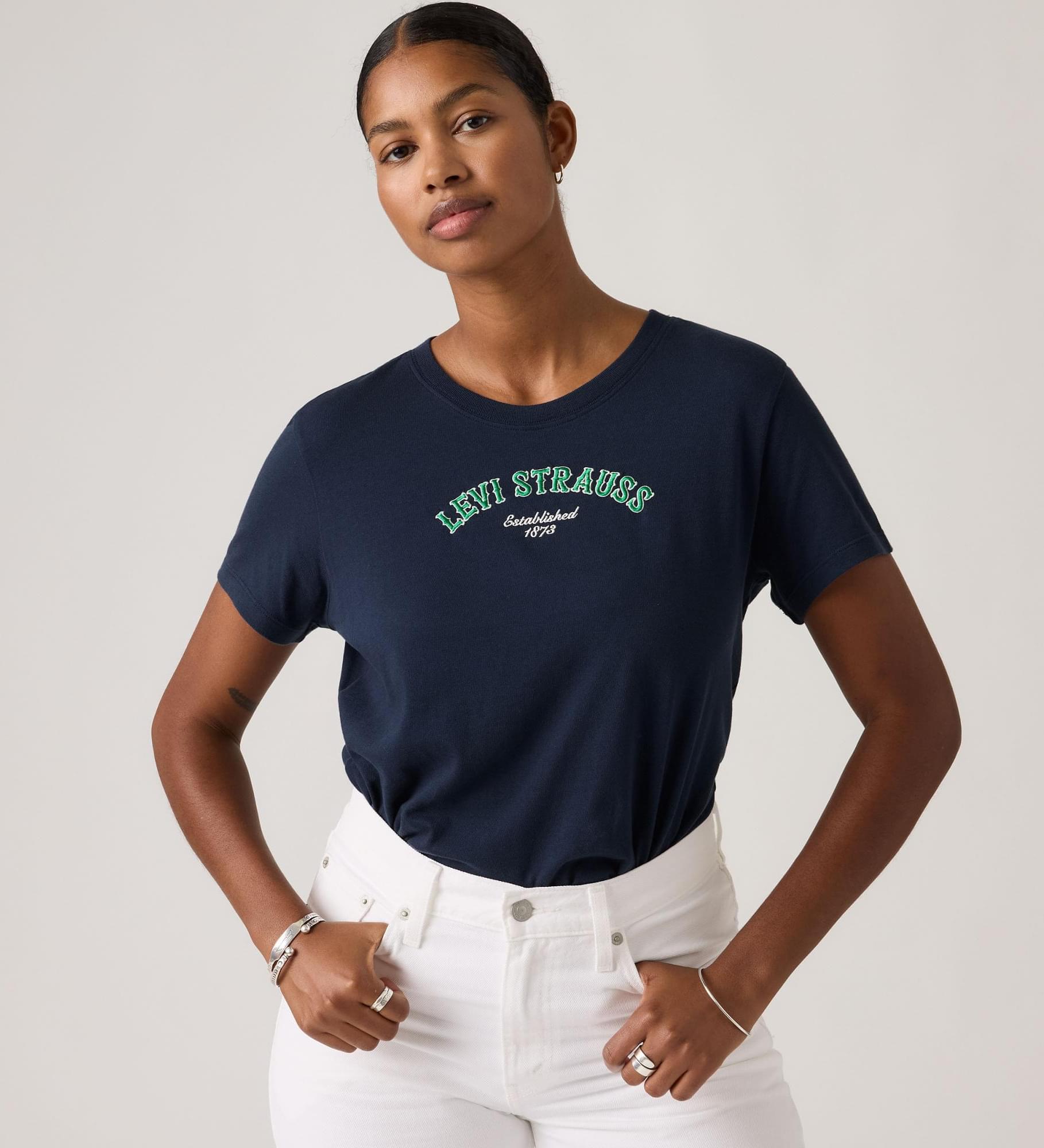 The search for your go-to tee ends here. We perfected our Graphic Favorite Tee with a classic crew neckline, soft but substantial fabric and an easy, flattering fit.