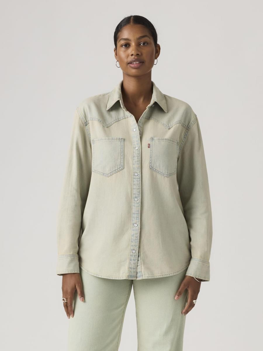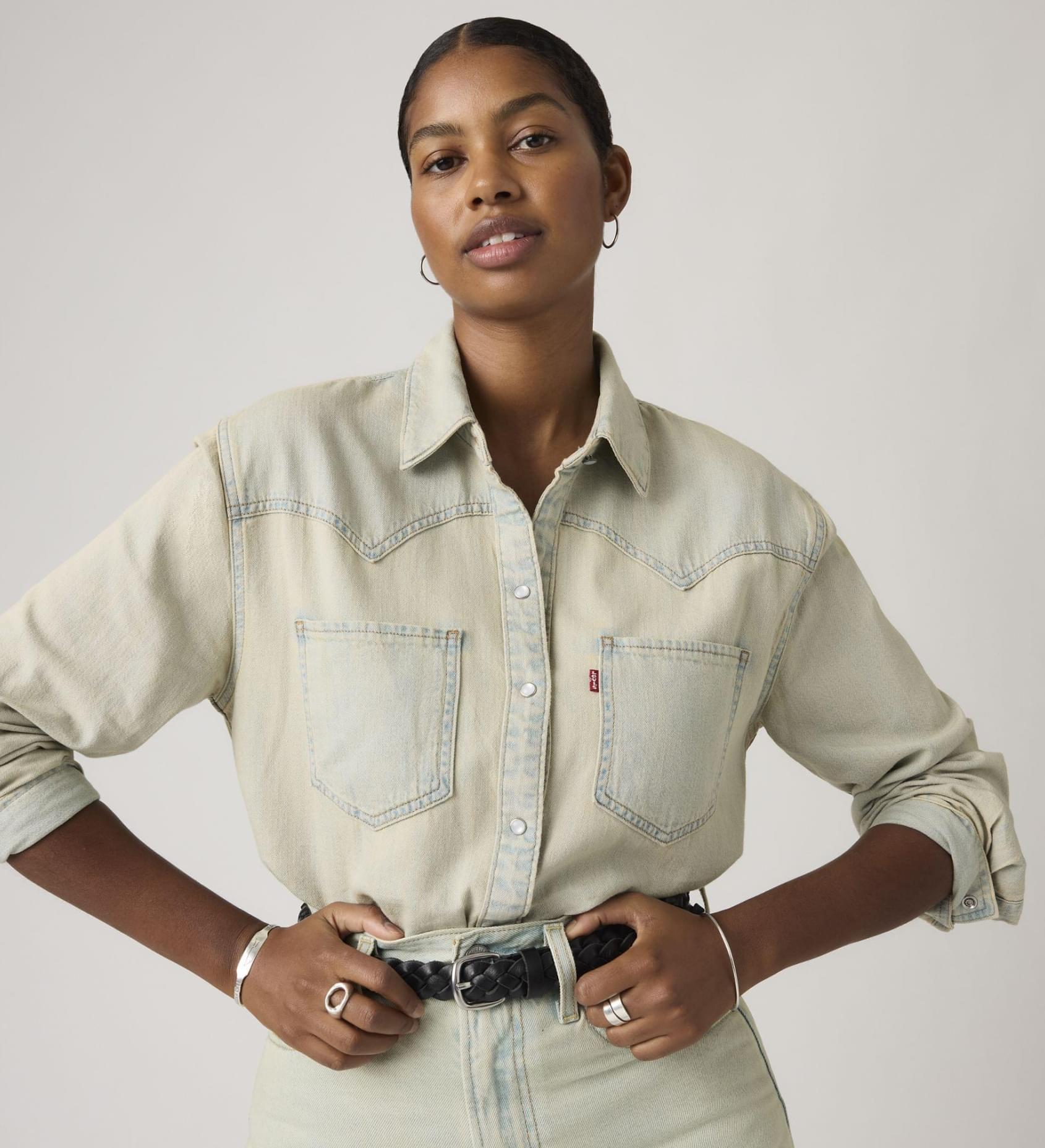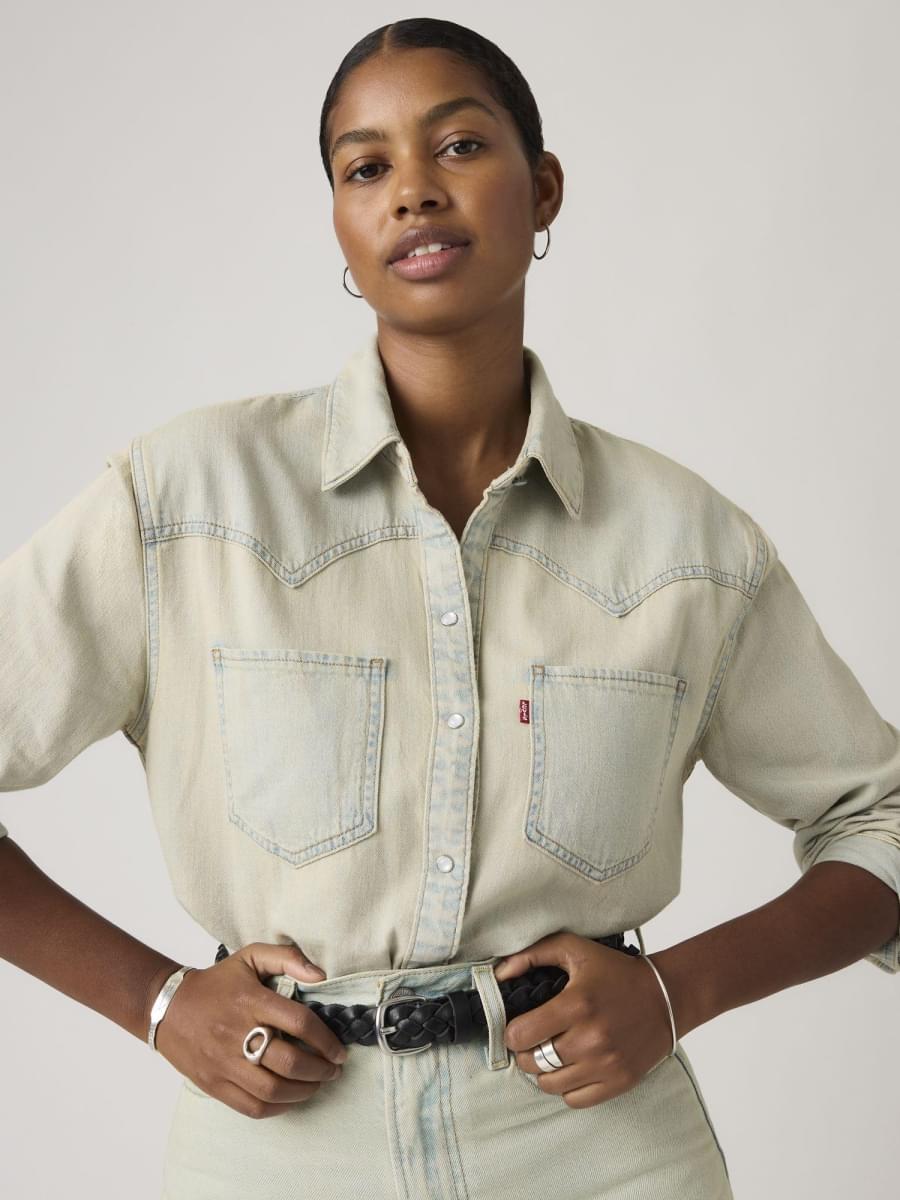 Cowboy boots not included. Our Teodora Western Shirt is a feminine take on a western staple, with a classic snap-button front, two patch pockets, a relaxed fit and a western-inspired yoke design.