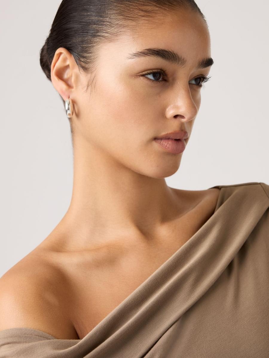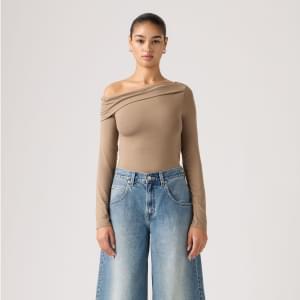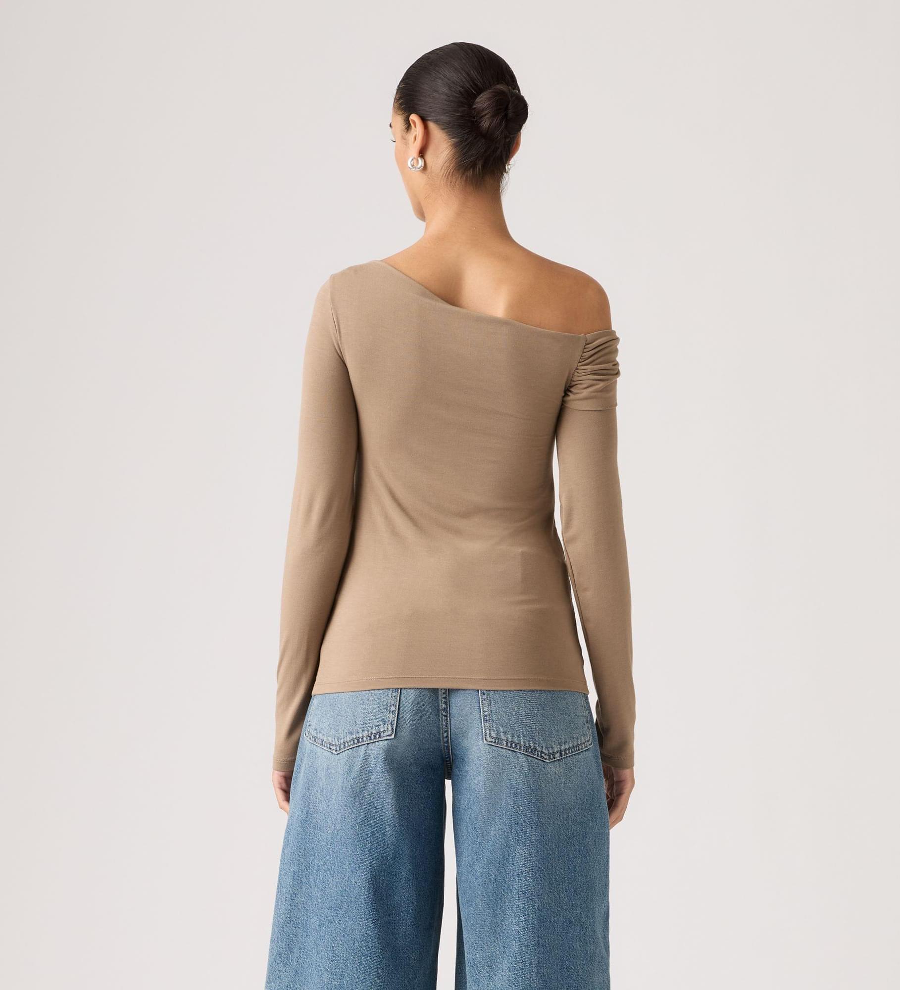 Easy to wear, without overthinking it. Our Clara Off Shoulder Long-Sleeve Top features an asymmetrical neckline, a standard fit and soft fabric.