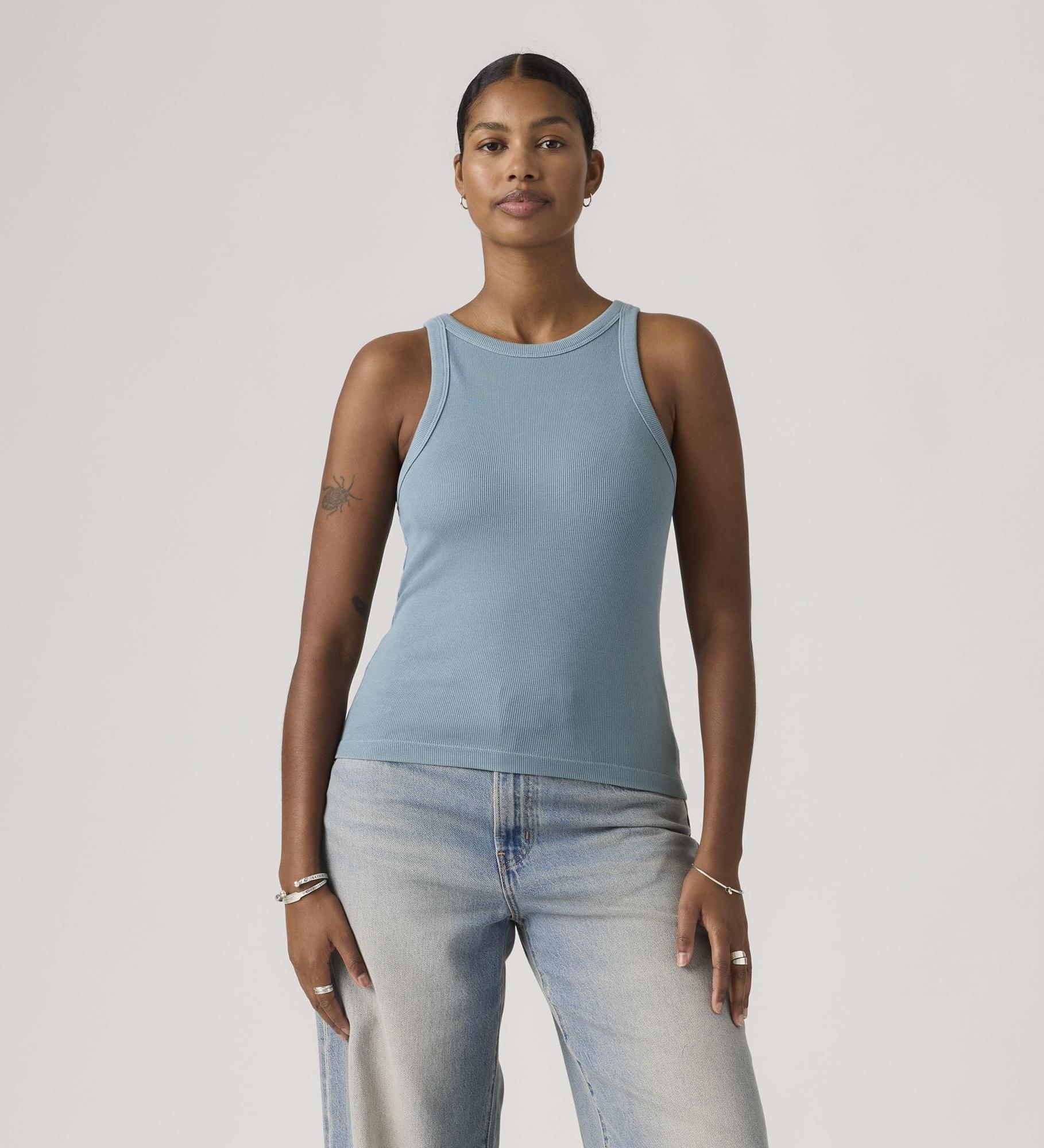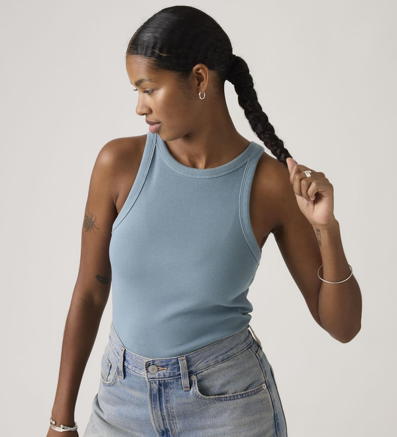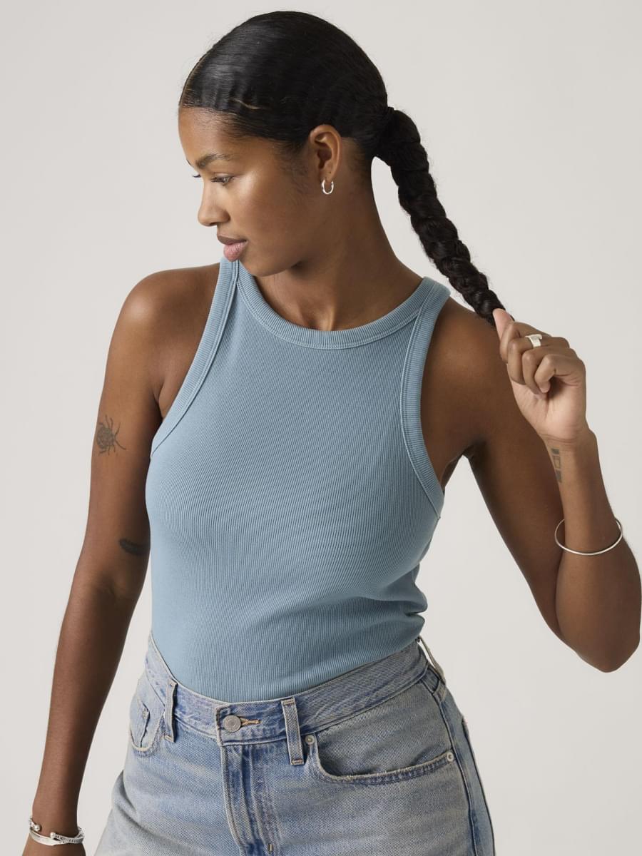 Classics like our Essential Racer Tank never go out of style. We made this one with a timeless crew neckline and a fitted cut—all topped off with our signature red tab.
