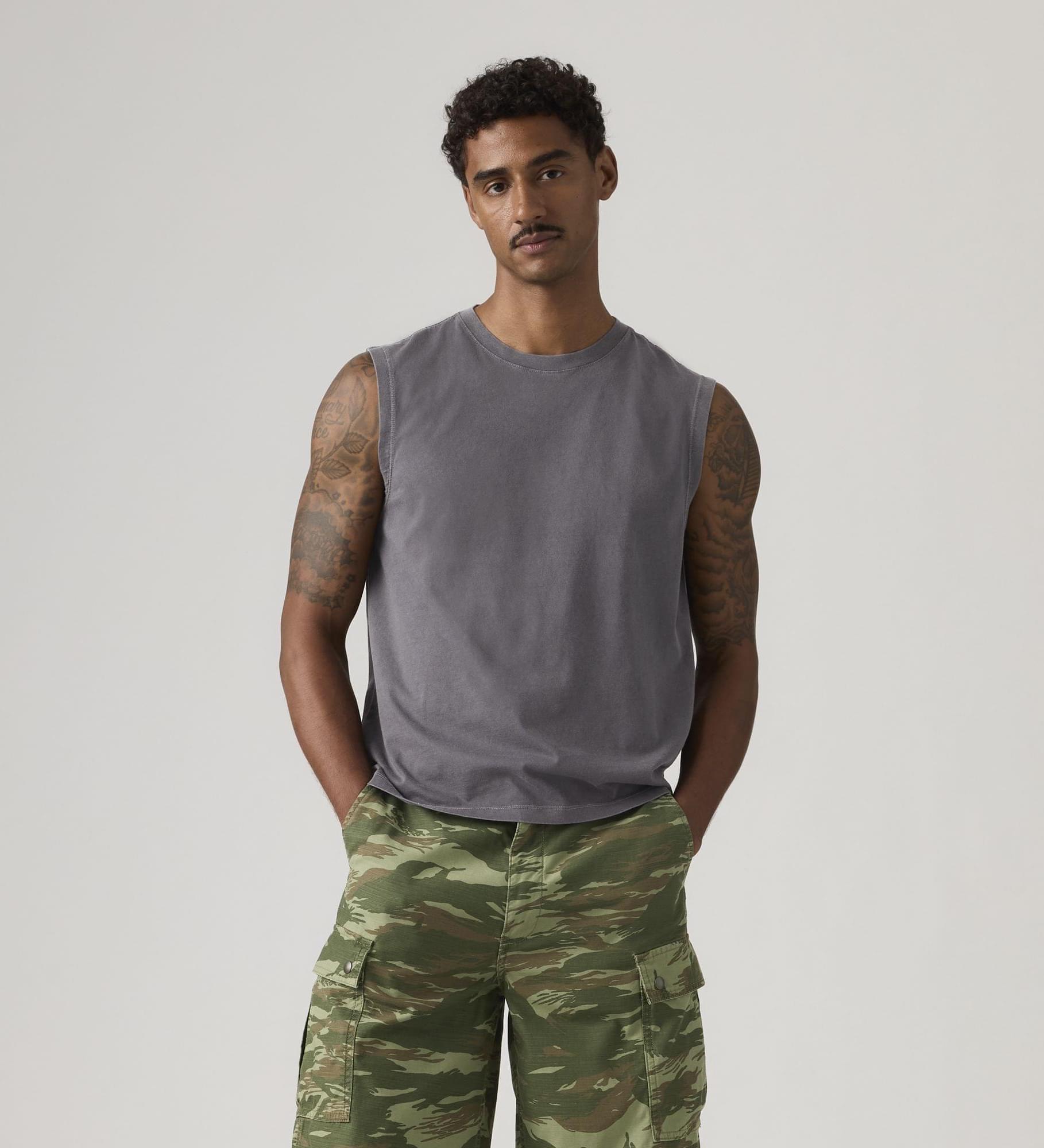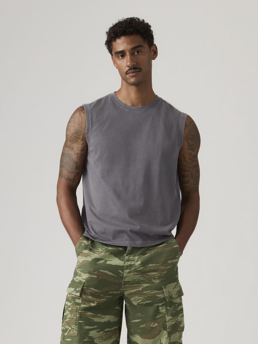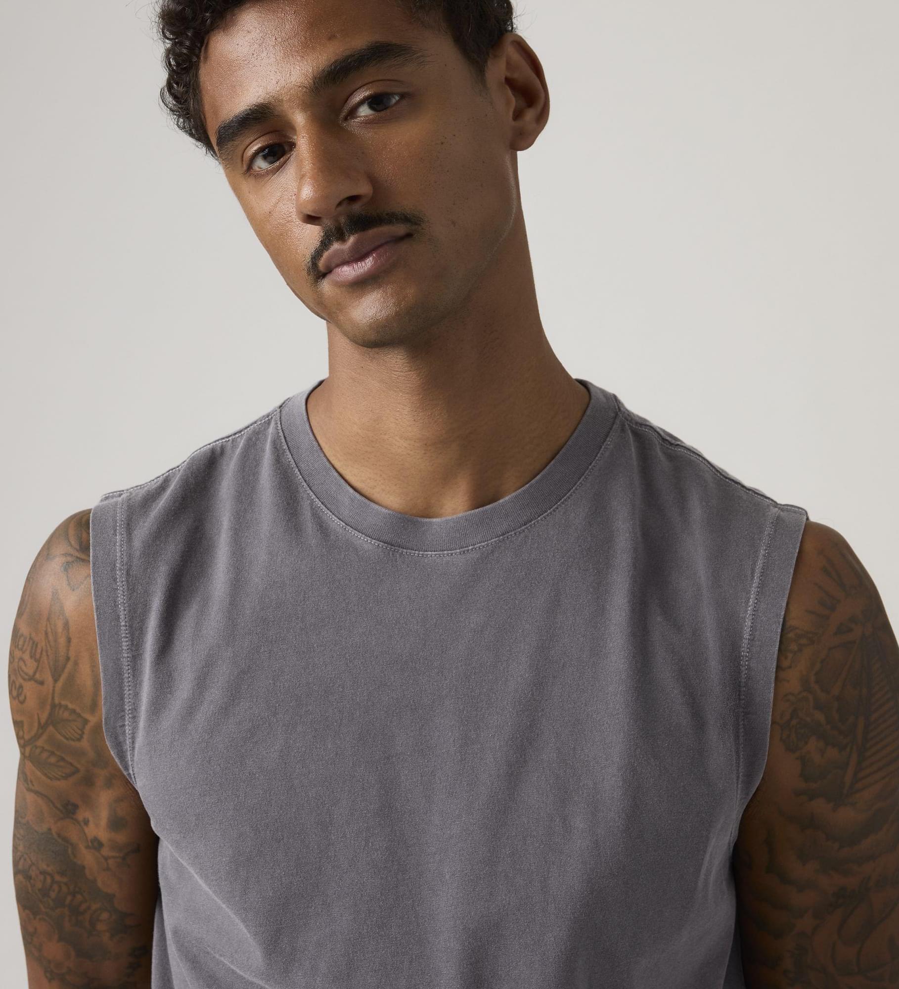 Free your shoulders. Our Muscle Tank is designed with a relaxed, boxy fit for keeping things easy and soft cotton for all-day comfort.
