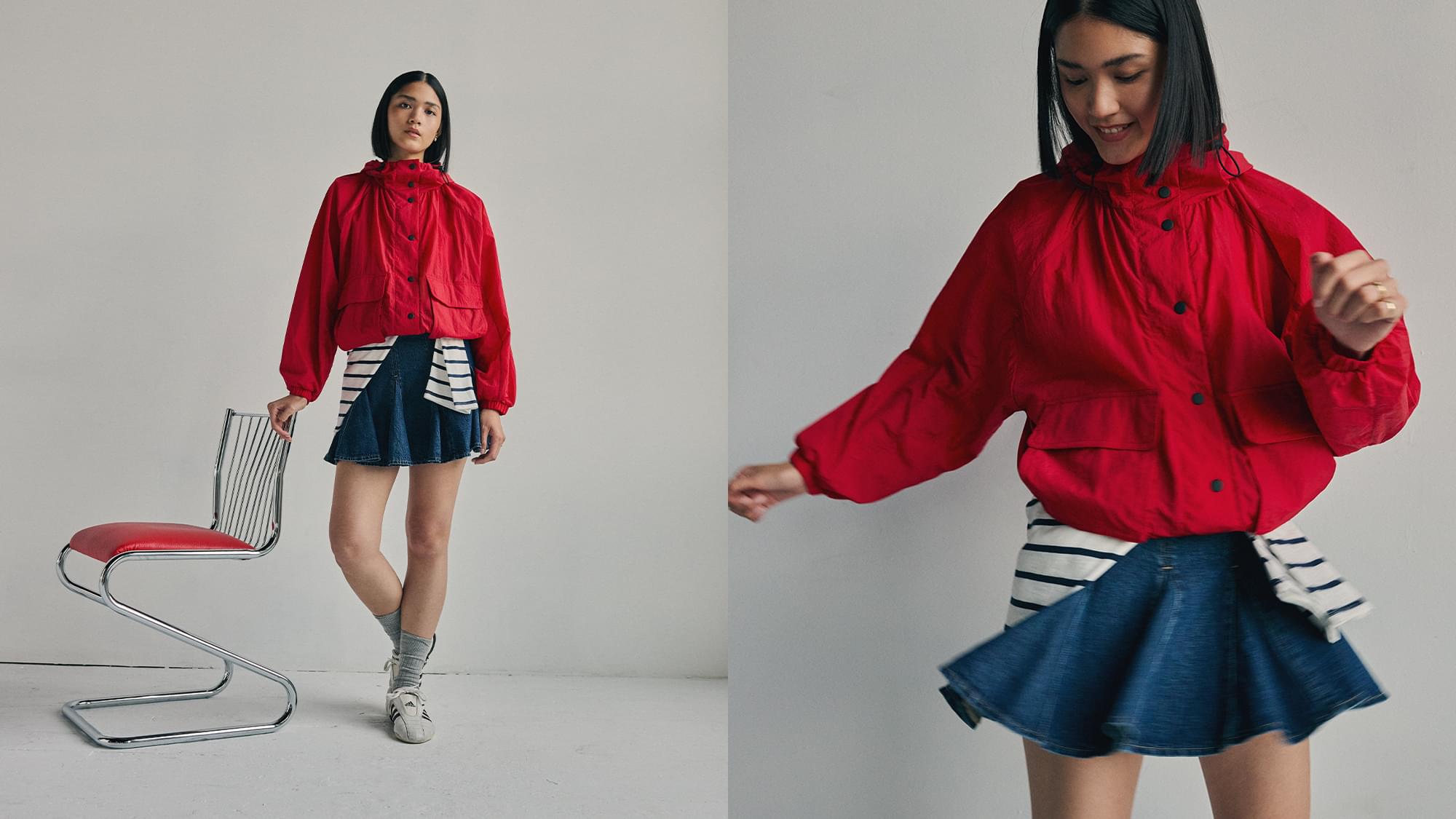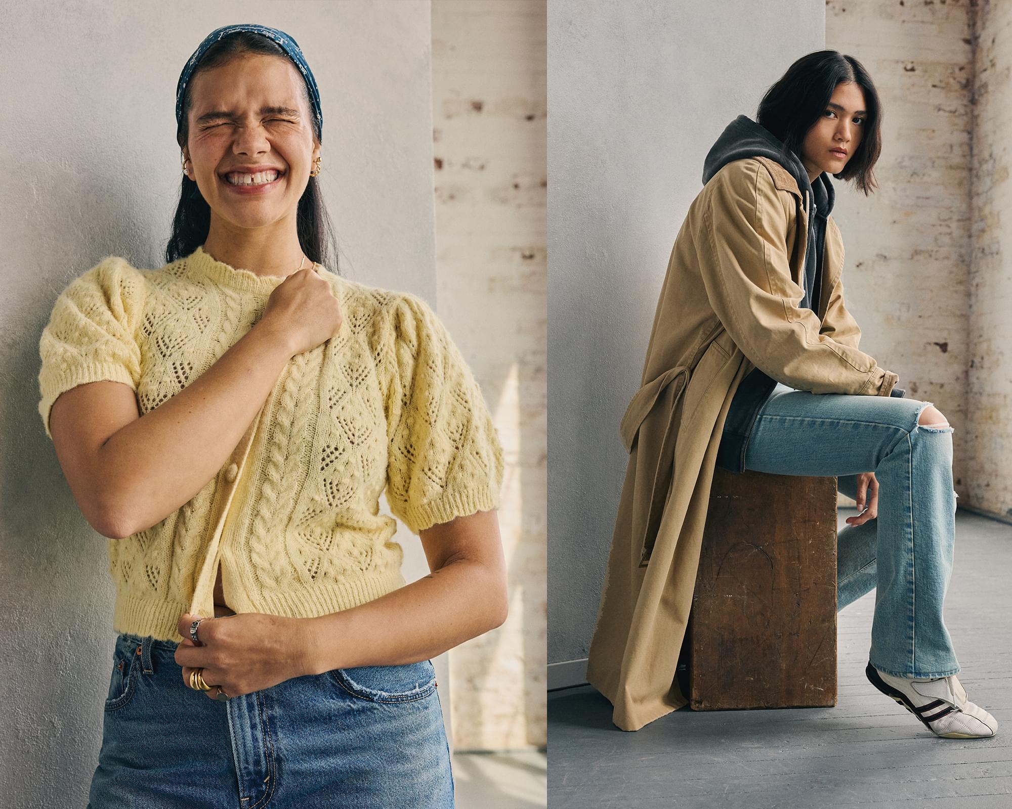 O tom washed blue combina na perfeição com denim claro para um look fresco e descontraído.