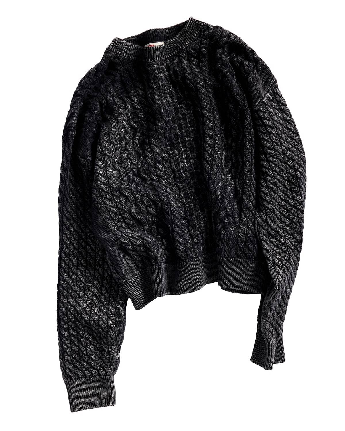 Uma cable knit desgastada. Camisas usadas como saias.