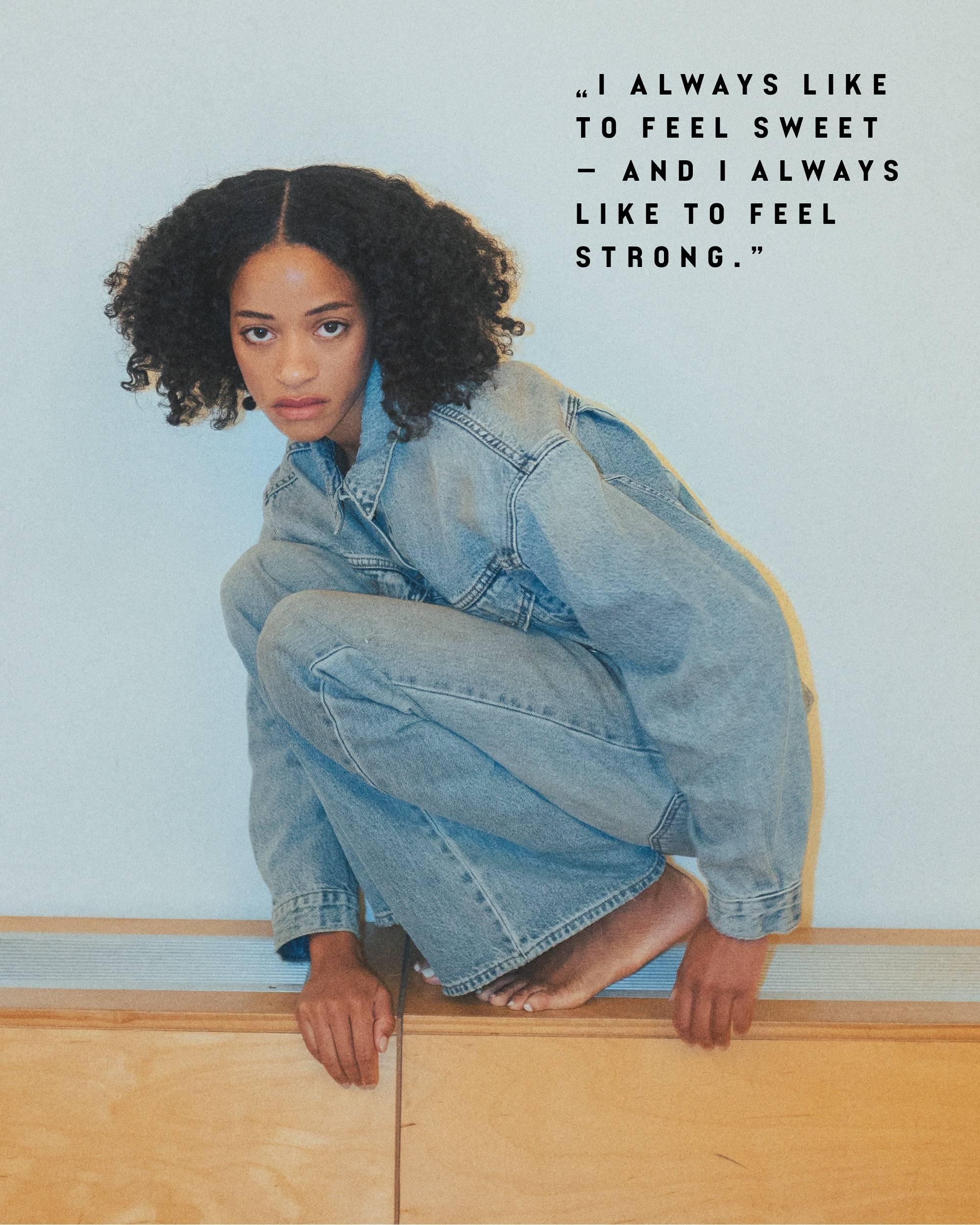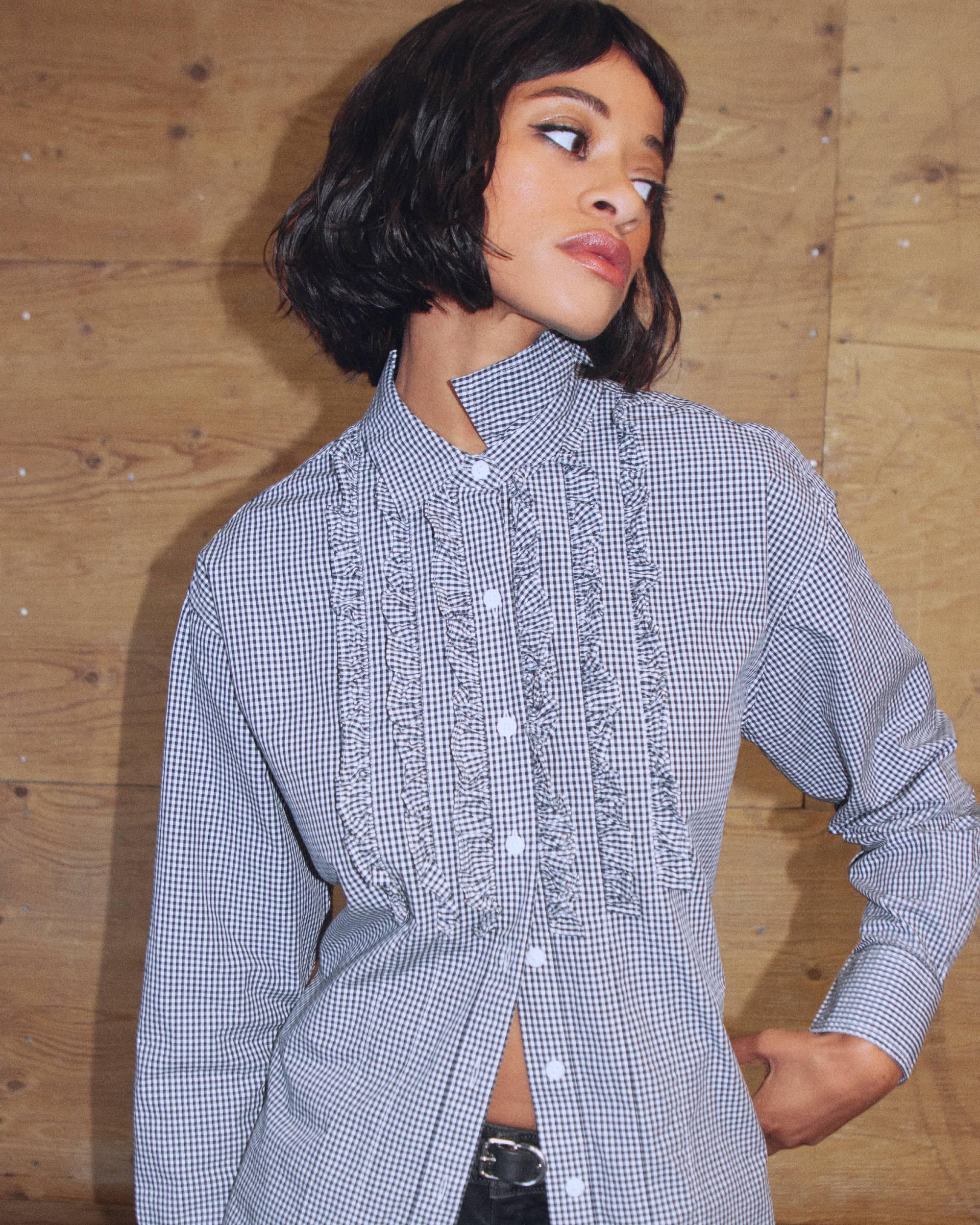 Feminina e masculina. Doce com um toque irreverente. Eis como a artista estiliza a nossa nova abordagem ao grunge e ao prep.