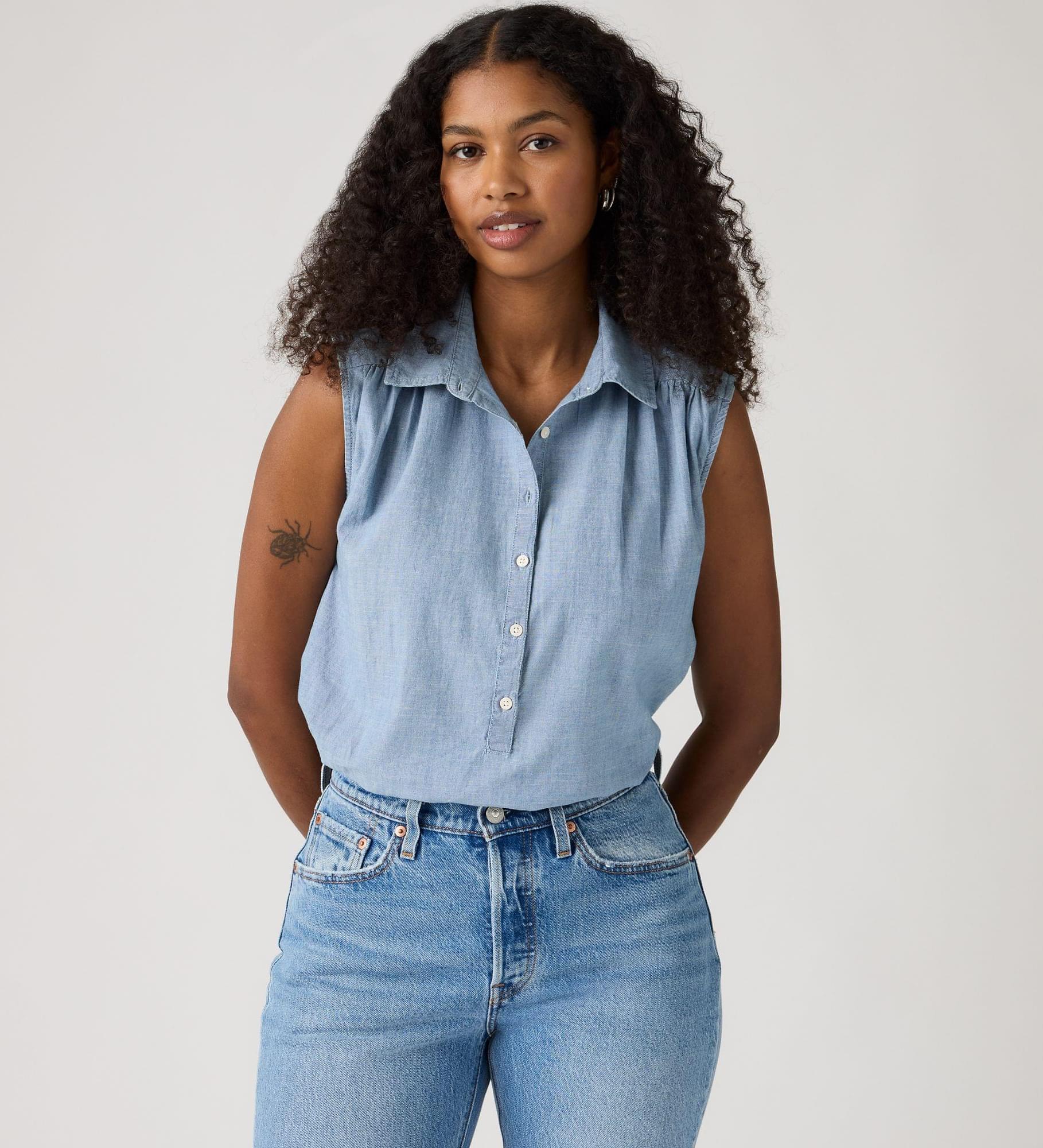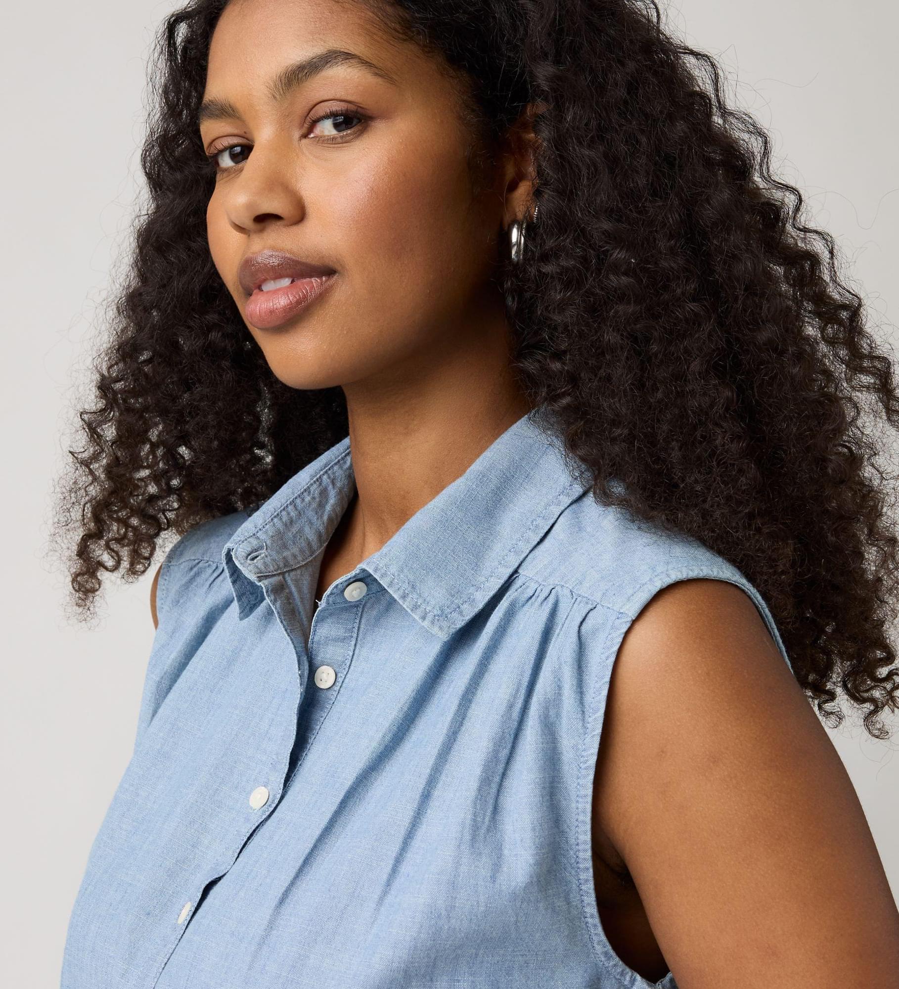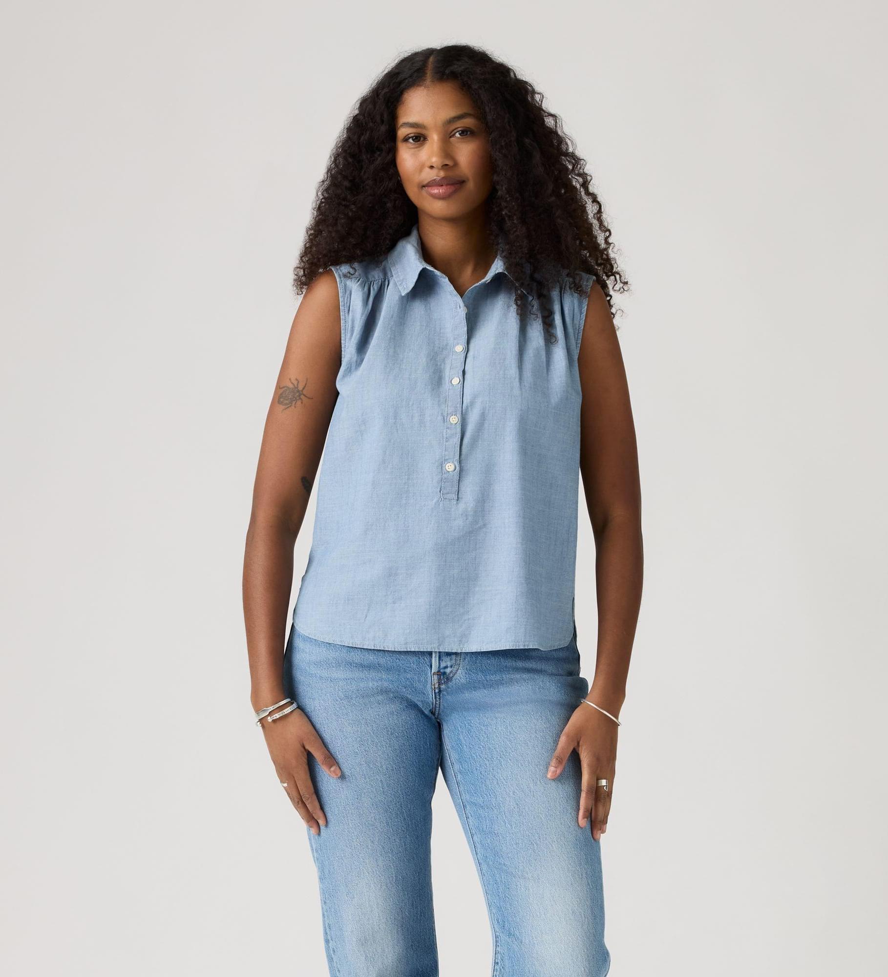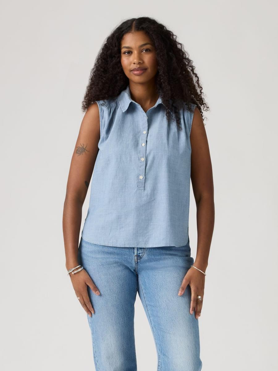 Fácil de vestir, com um look elegante do início ao fim do dia. A nossa Londyn Short-Sleeve Popover Top apresenta um colarinho clássico pontiagudo com frente abotoada e um corte descontraído e fácil de usar.