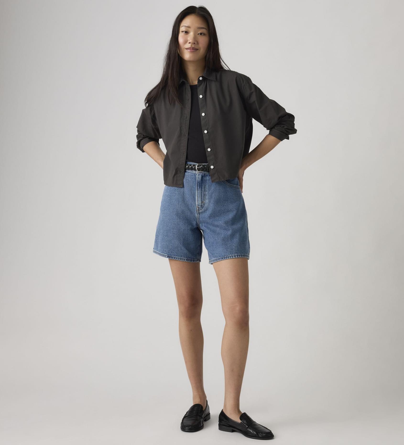 Os calções largos de inspiração vintage com que sempre sonhaste existem mesmo. Os nossos High-Rise Baggy Shorts foram concebidos com uma cintura subida favorecedora, corte baggy e comprimento acima do joelho na medida certa.