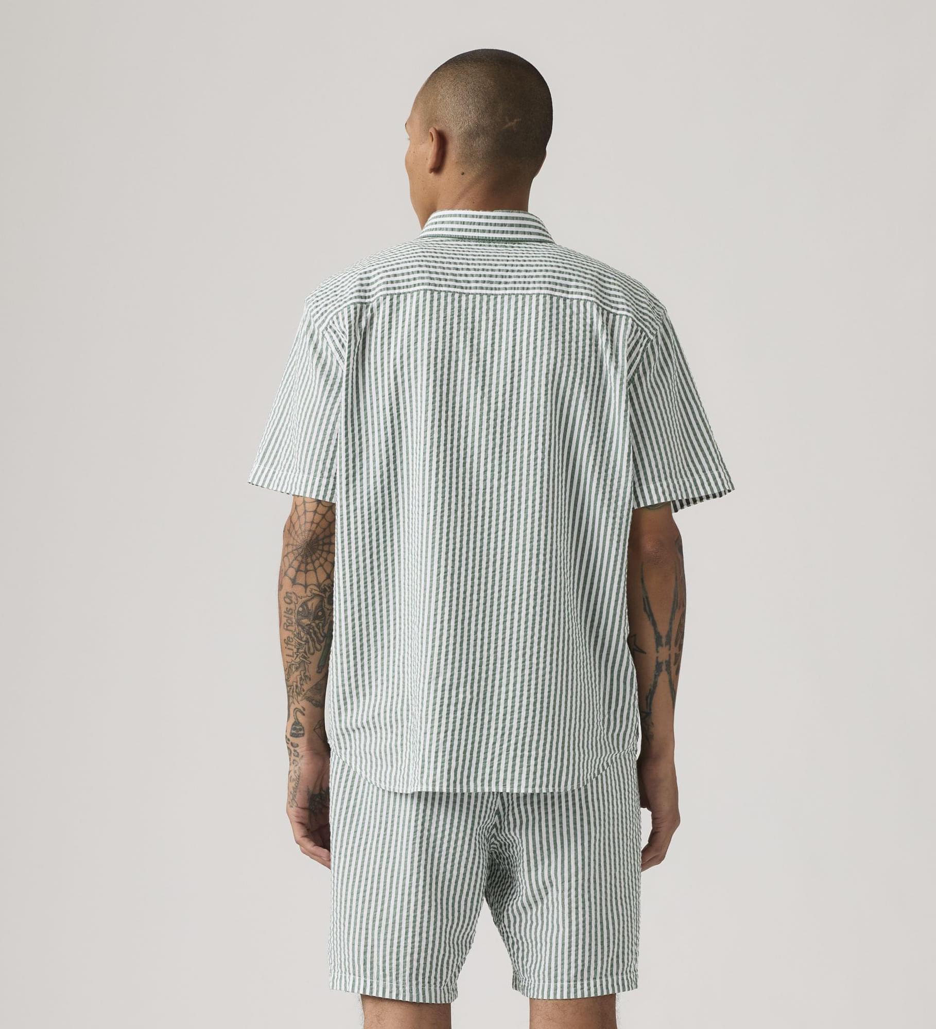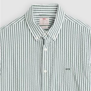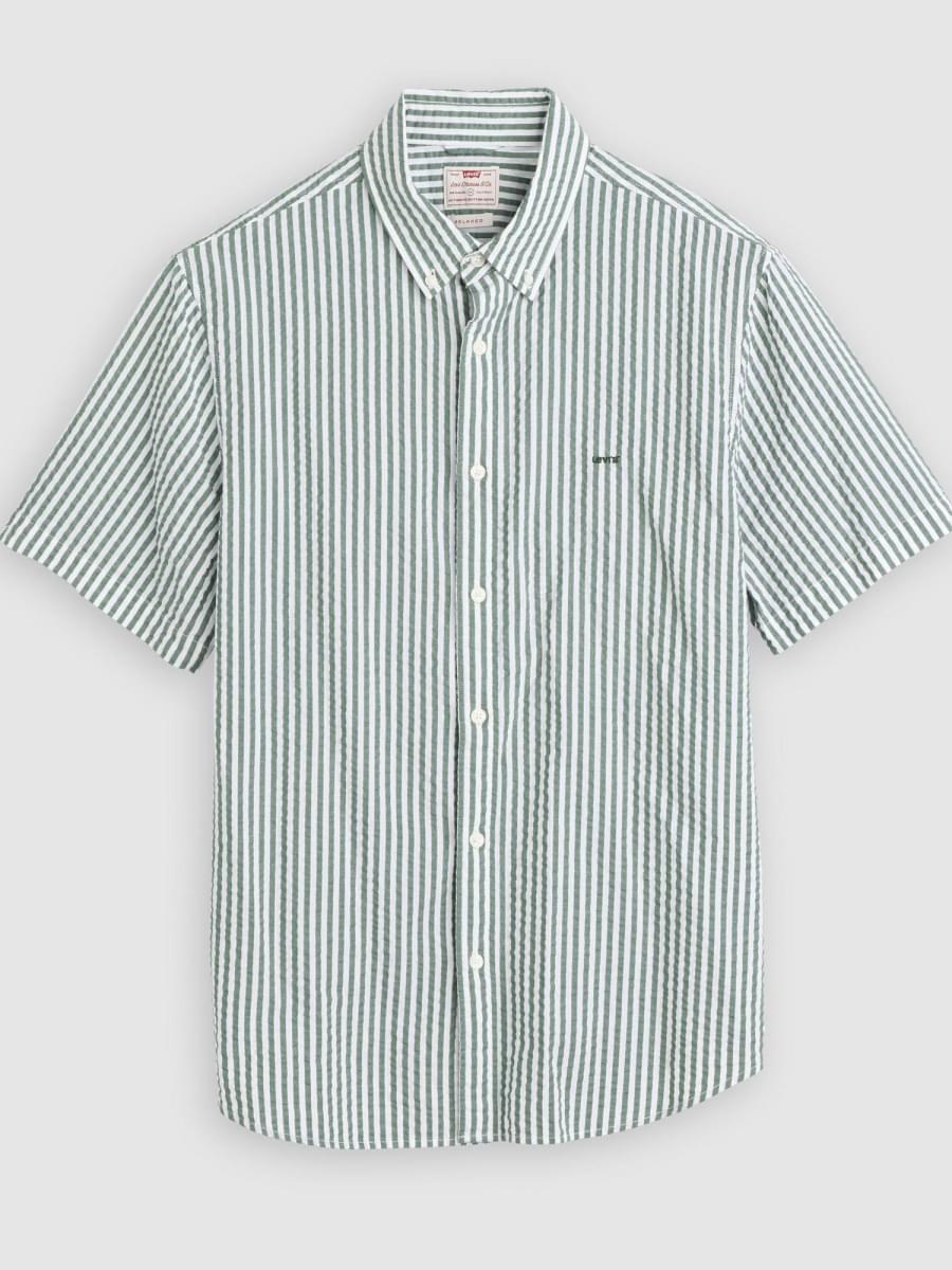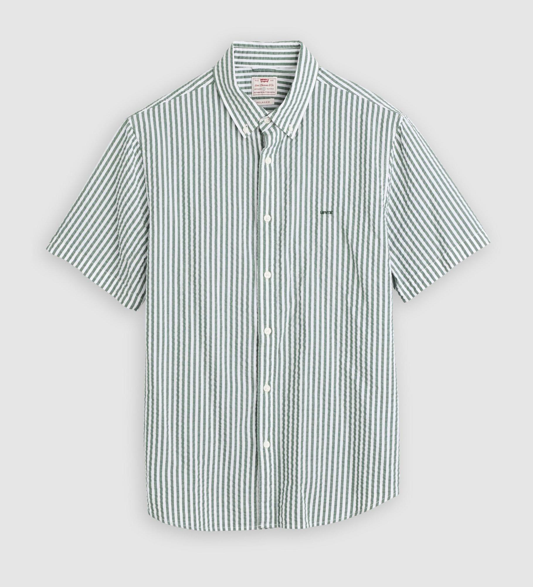 • Seersuckerbr>Colarinho de botões