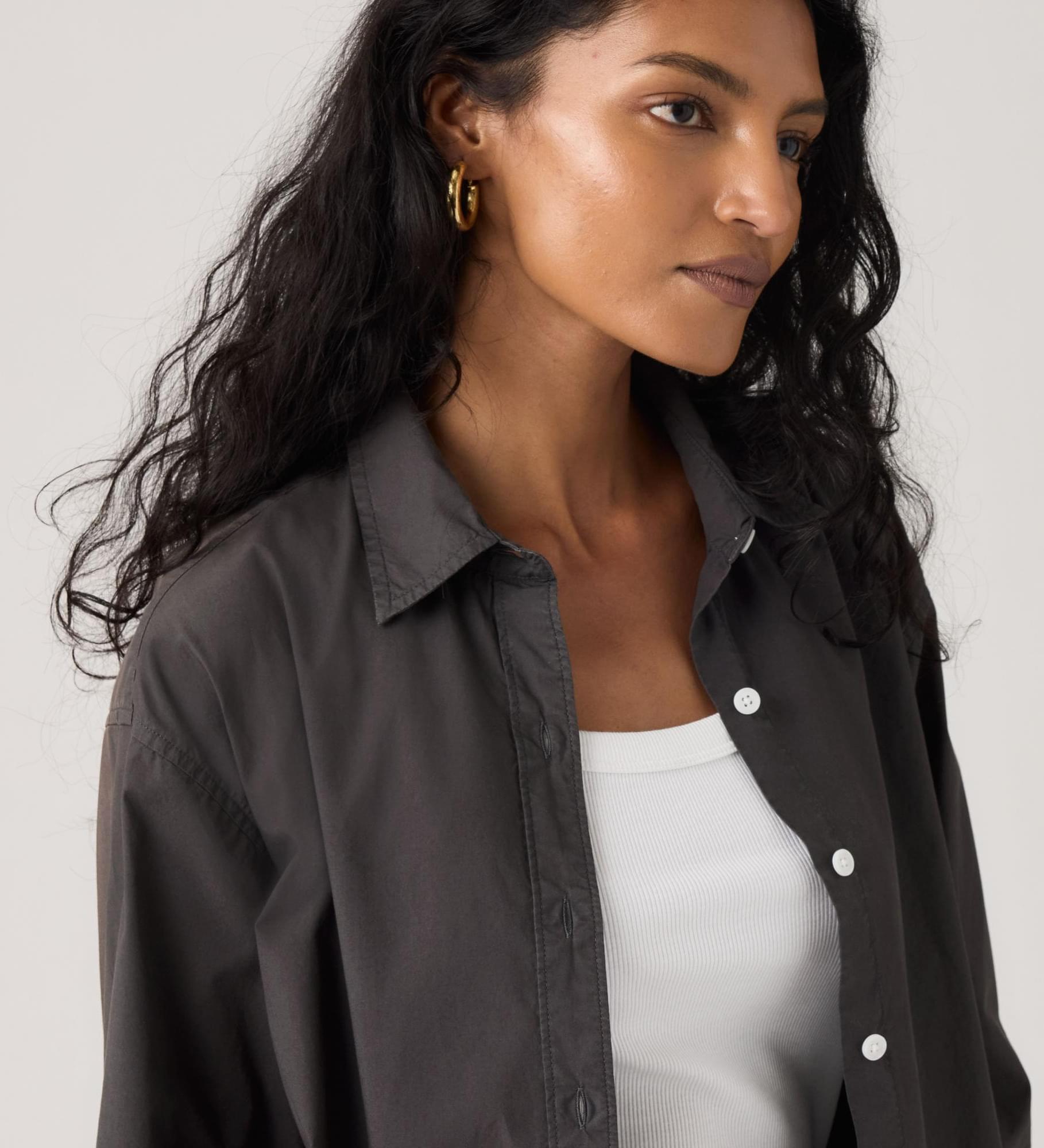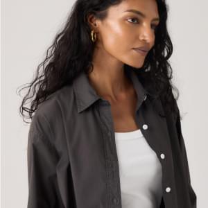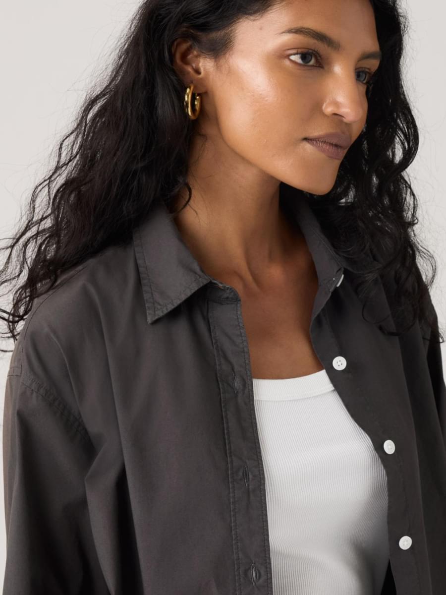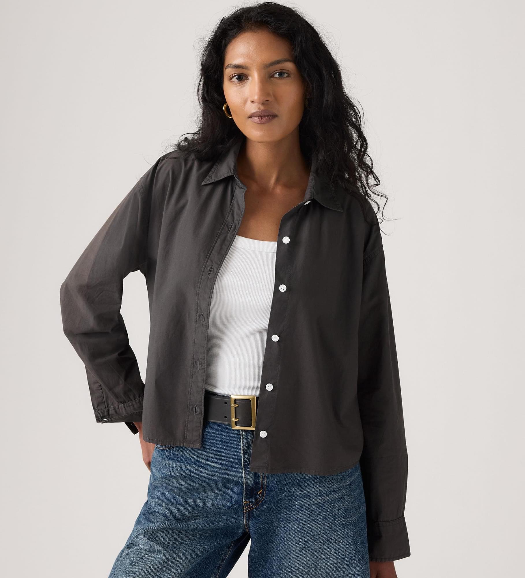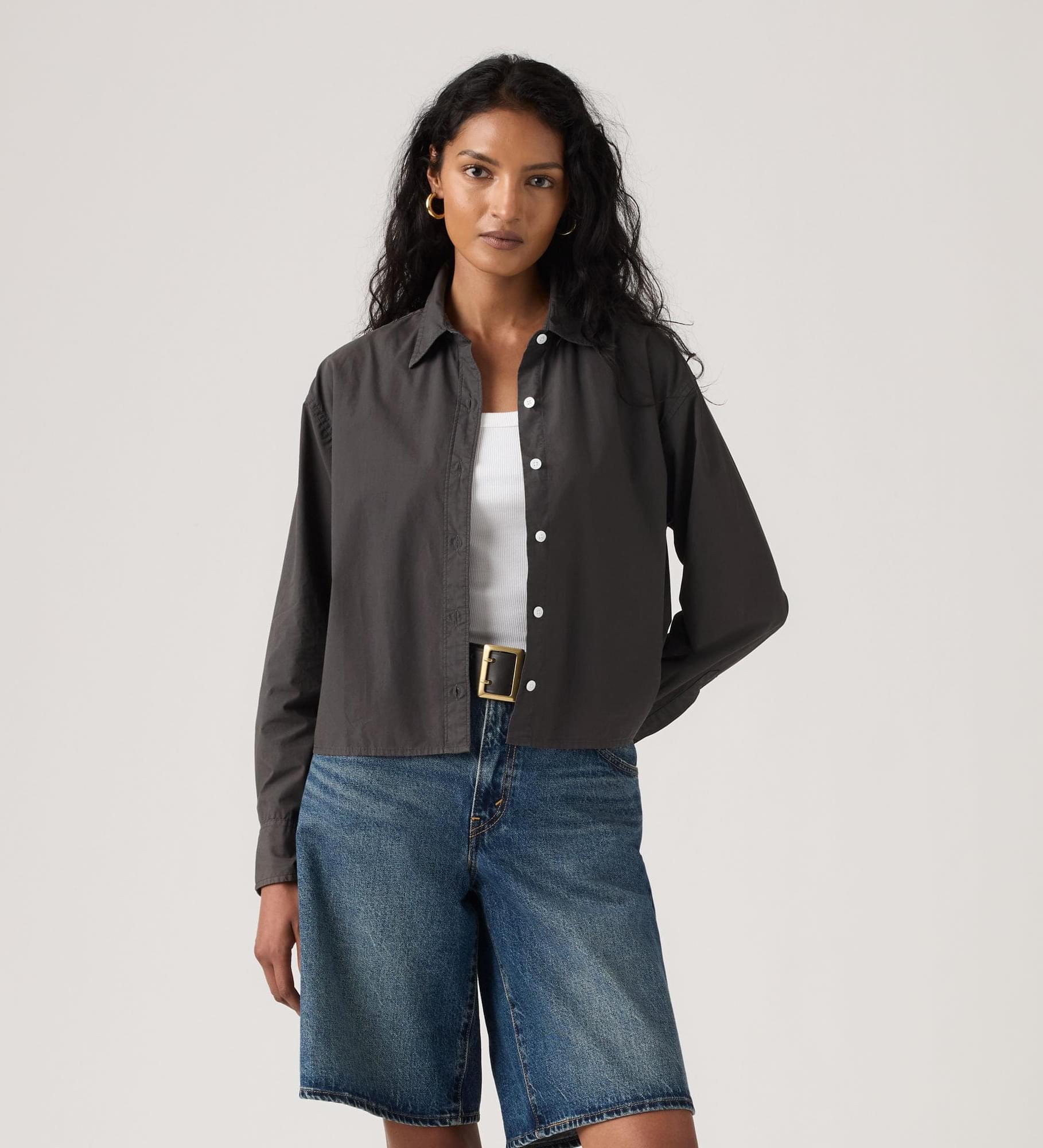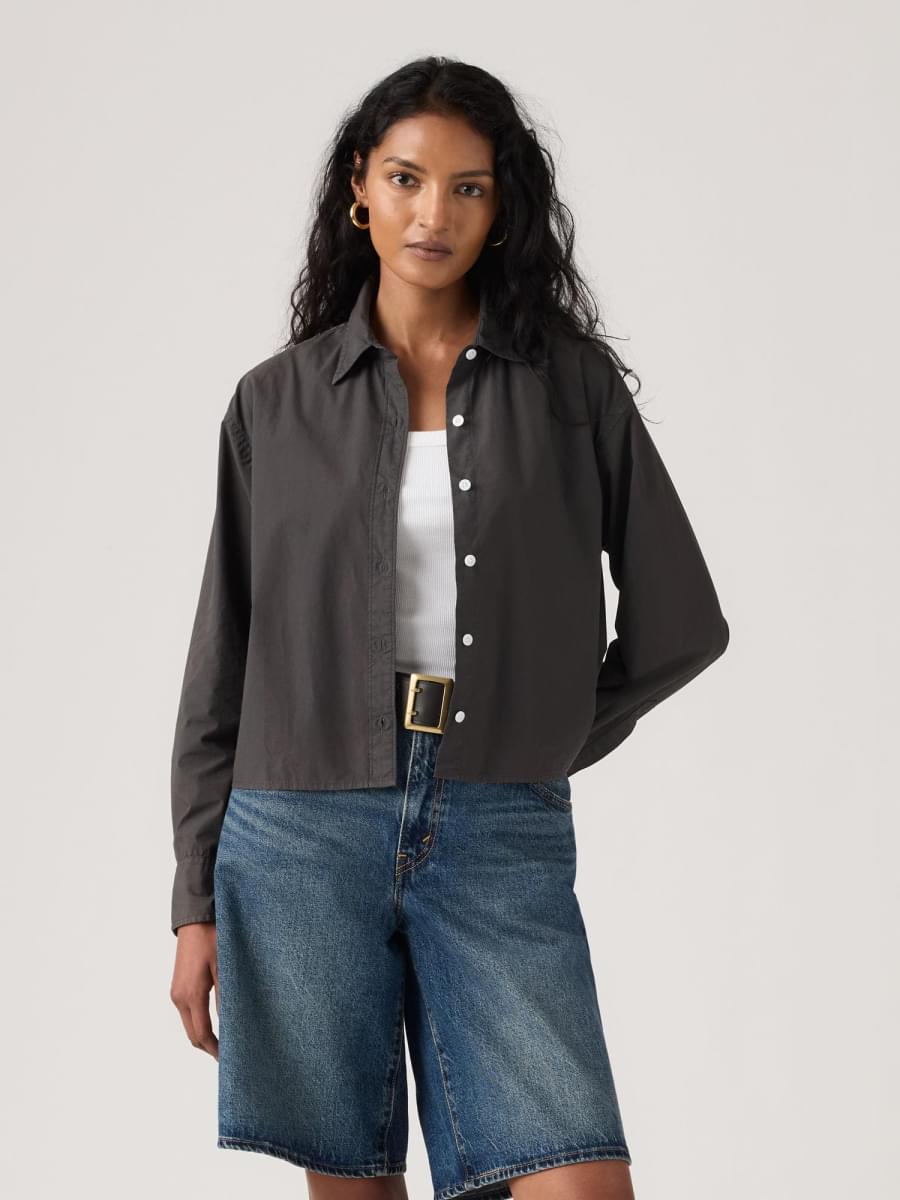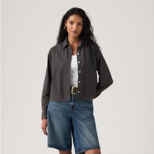 Não é uma camisa de botões comum. A Cropped Harlie Shirt apresenta um colarinho elegante, um fit relaxado na medida certa e um fecho frontal com botões.