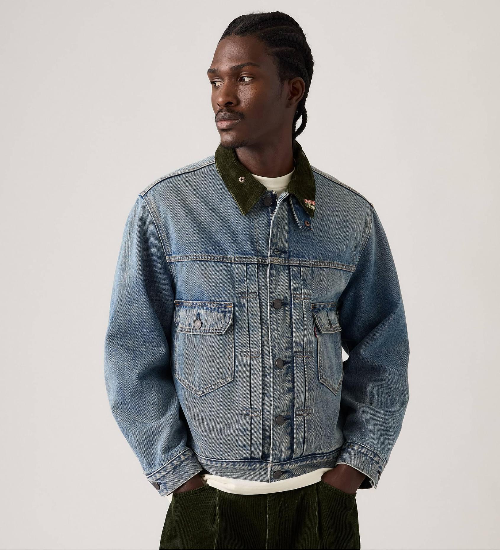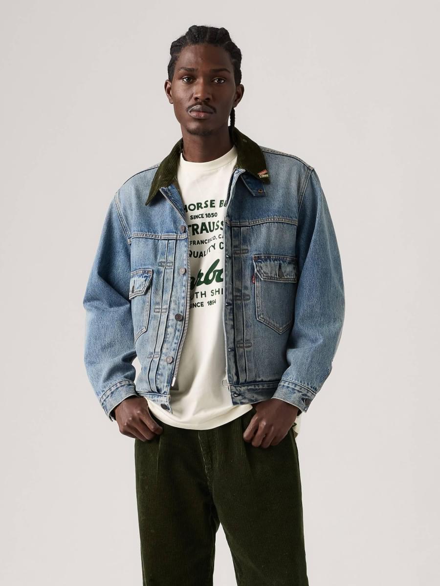 Juntámo-nos à icónica marca Barbour para destacar um saber-fazer e uma individualidade excecionais, onde o denim da Levi's® se encontra com os detalhes característicos da Barbour. Este Type II Trucker Jacket combina os acabamentos e detalhes icónicos da Barbour com o nosso modelo intemporal. De comprimento mais curto, este casaco apresenta pormenores únicos de pregas, combinados com fecho de correr com puxador em anel característico da Barbour, forro em padrão tartan e gola em bombazina.