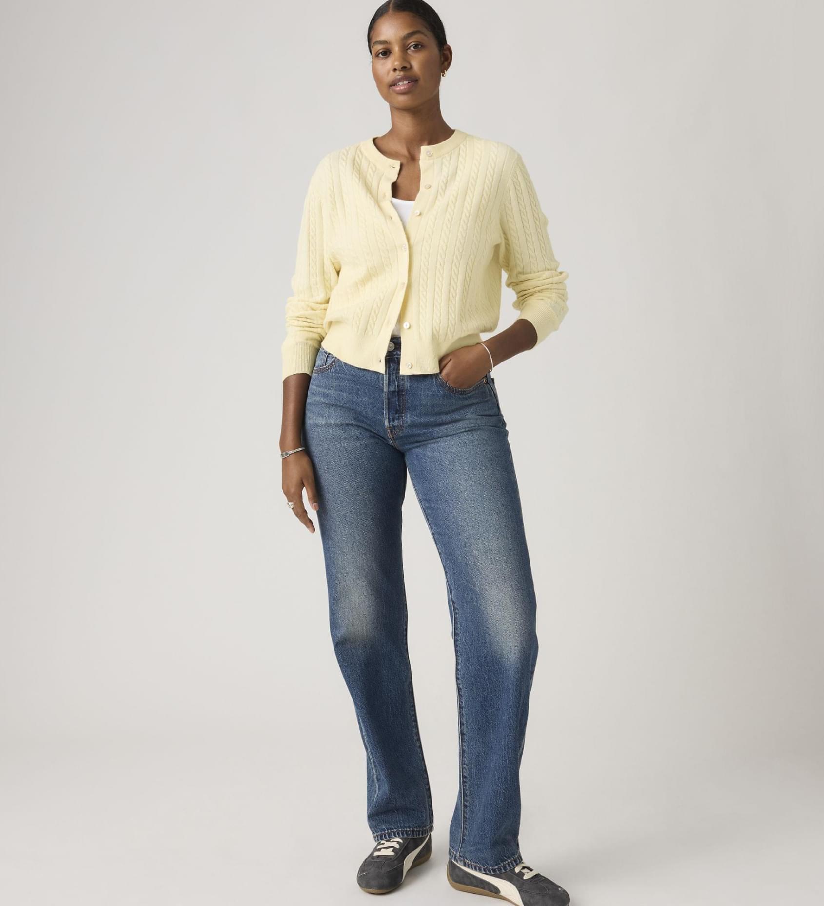 Nunca pensaste que fosse possível, mas aconteceu. Os teus jeans favoritos reencontram-se com a tua década favorita. Concebemos estes 501® ‘90s Jeans com uma cintura média clássica e um corte direito solto com a largura certa à volta da perna. São os jeans vintage que esperarias encontrar numa loja de artigos usados, mas sem teres de vasculhar à procura.