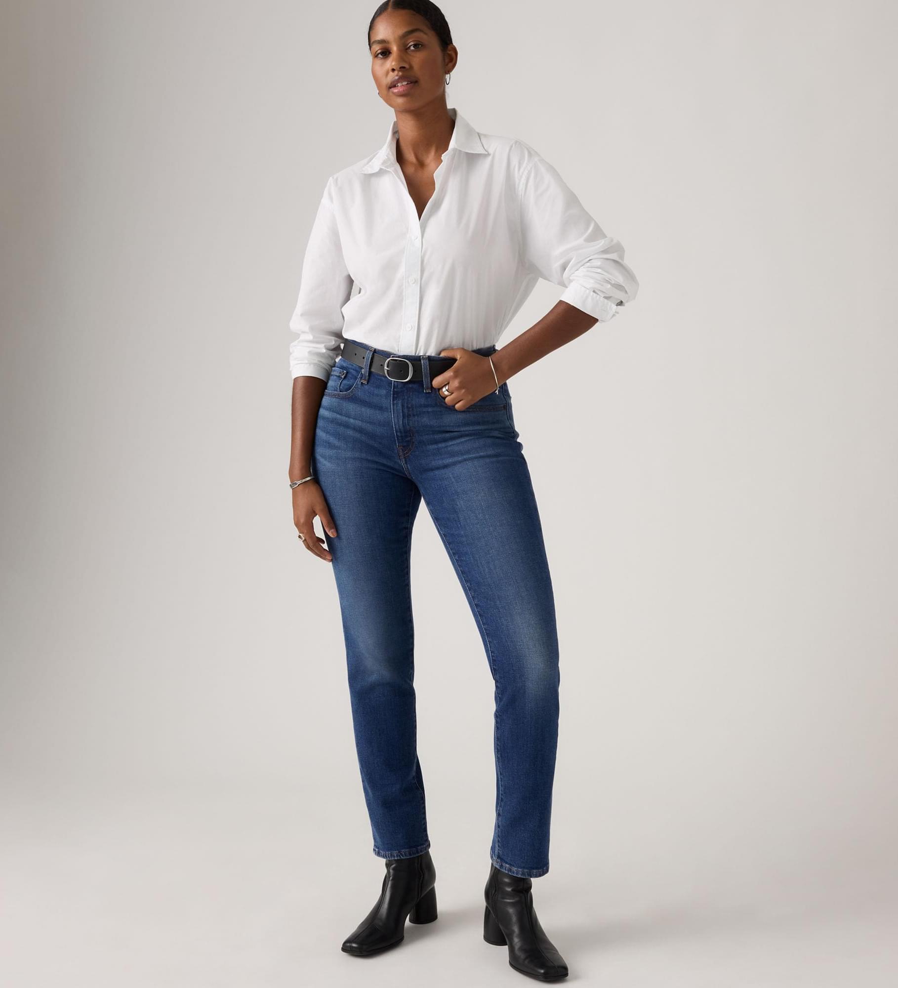 Cintura subida. Corte slim. Perna a direito. Pegámos na tua cintura subida favorita e atualizámo-la com uma perna a direito ultra-moderna. Parte da nossa linha de cortes icónicos “Lot 700”, os 724 High-Rise Straight jeans foram concebidos para favorecer — todos os dias, o dia inteiro.