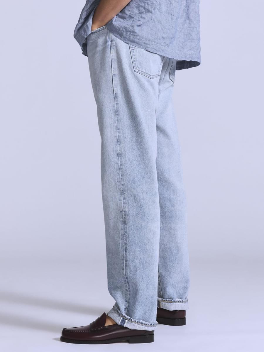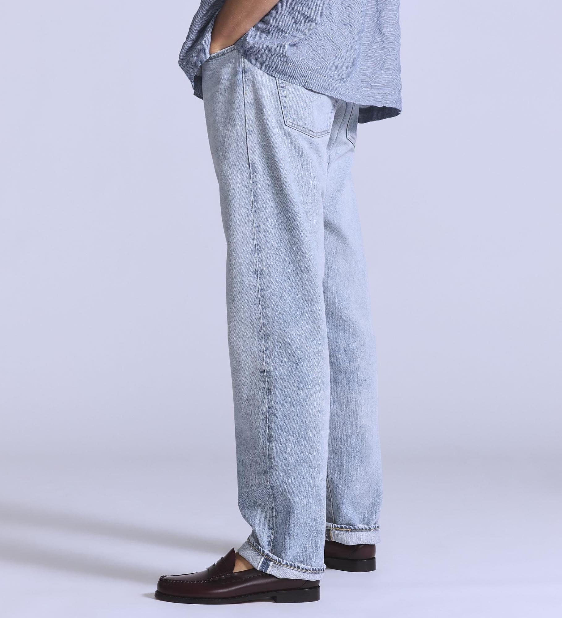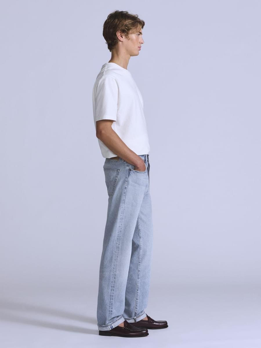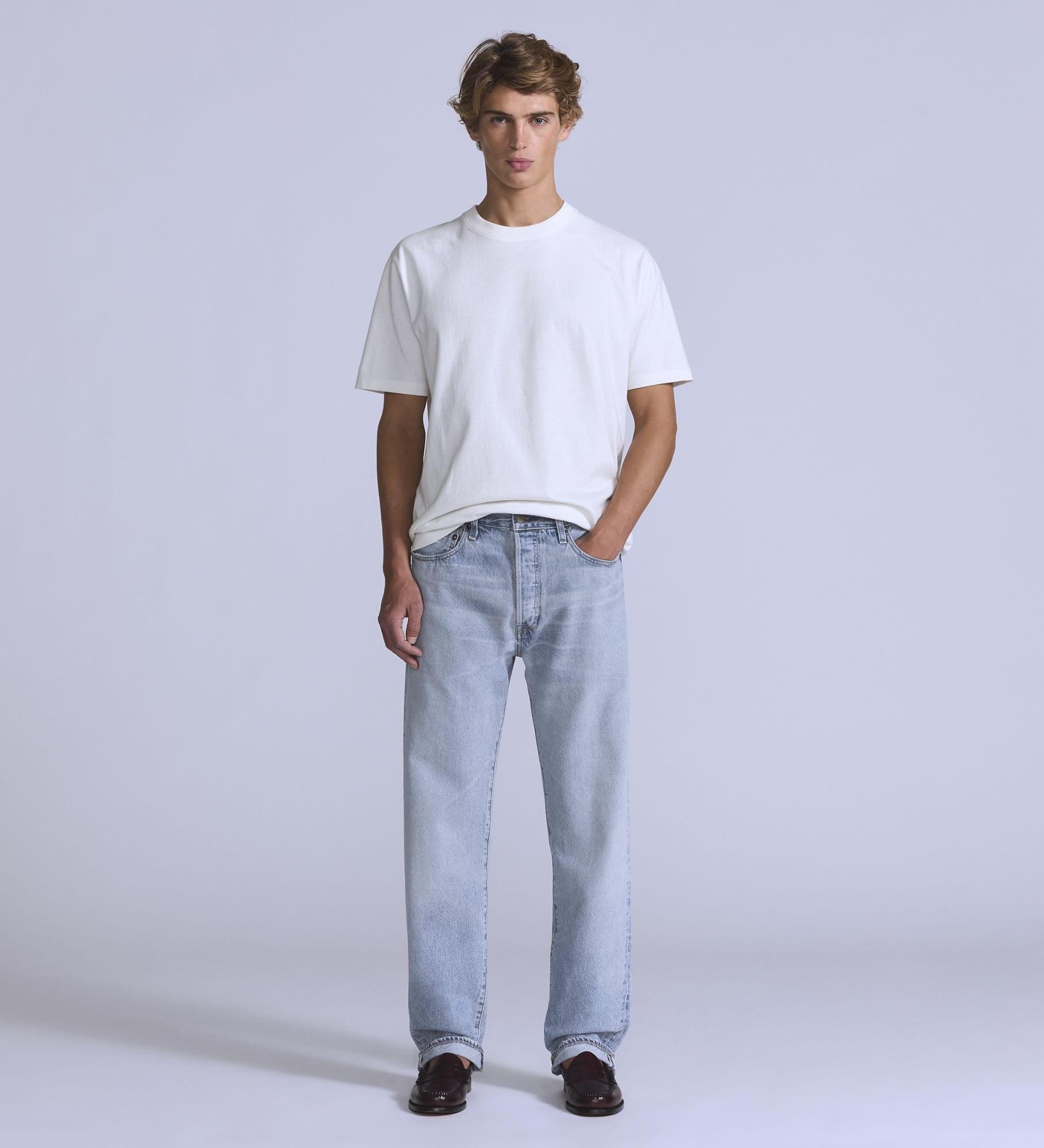 • Os nossos icónicos jeans de corte a direito com o característico fecho de botões