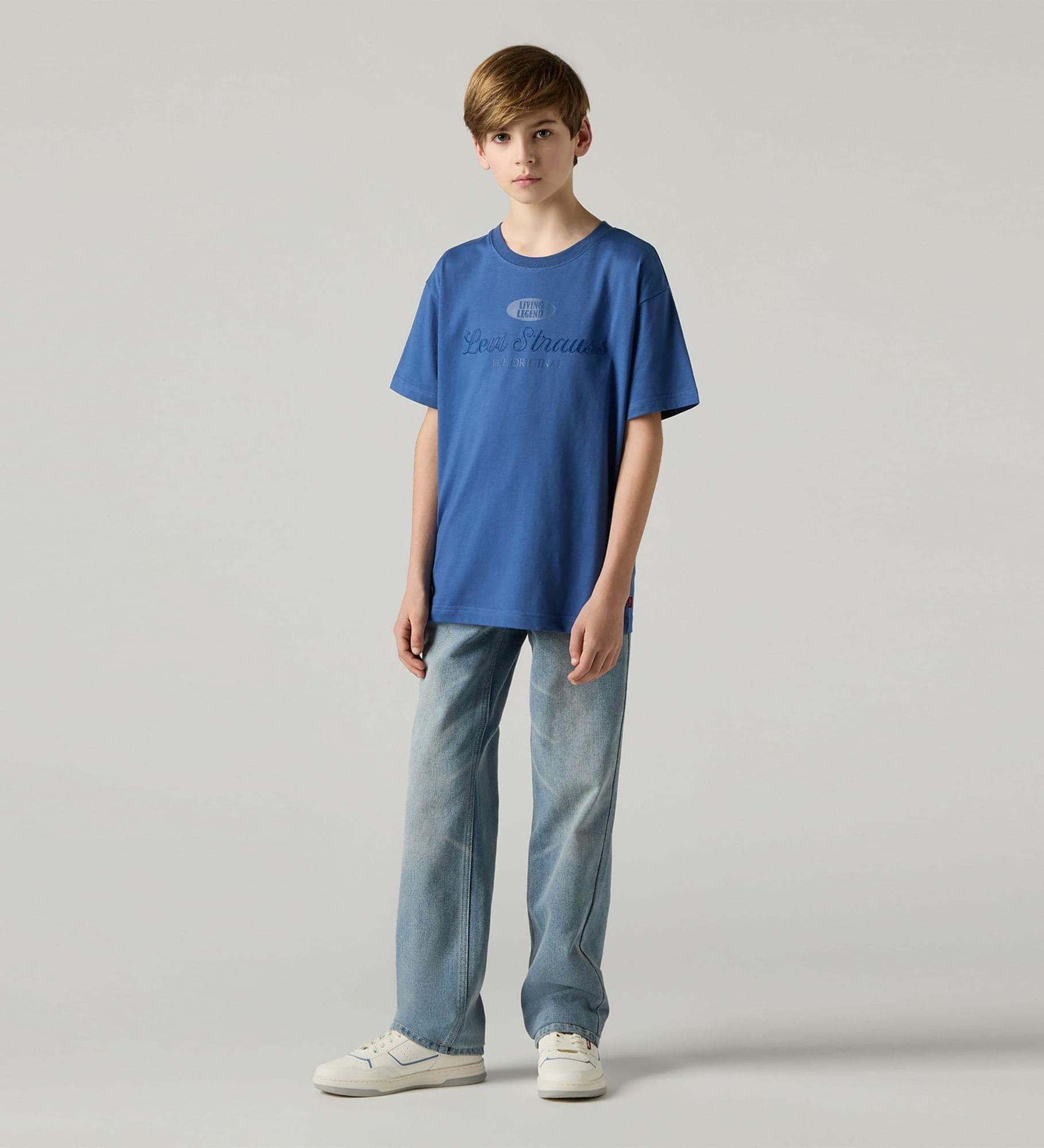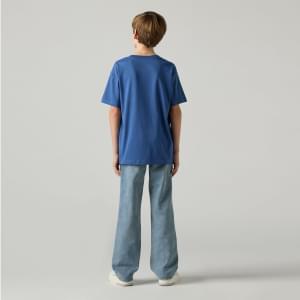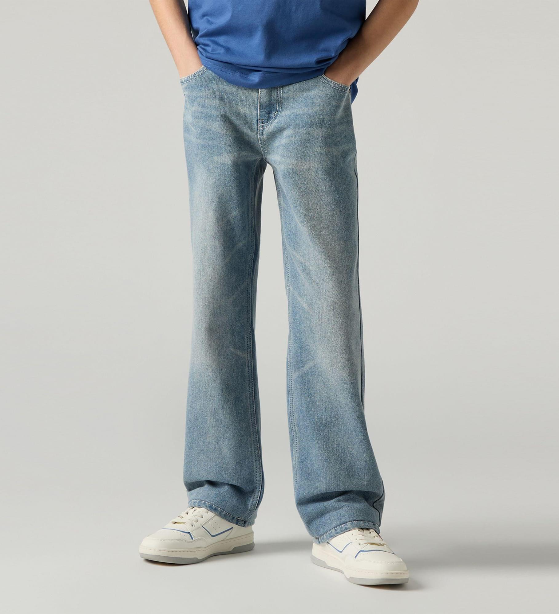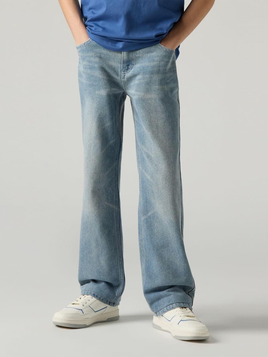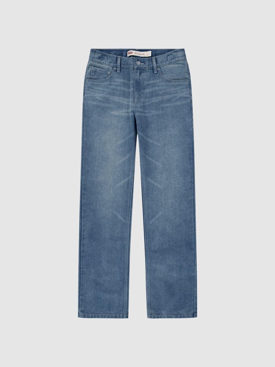 Com uma cintura clássica de altura média e perna a direito intemporal, estes jeans Levi's® oferecem um estilo retro confortável e cheio de atitude que favorece todos os corpos. A cintura ajustável proporciona um ajuste personalizado e garante que o teu pequeno trendsetter os possa usar também na próxima estação.