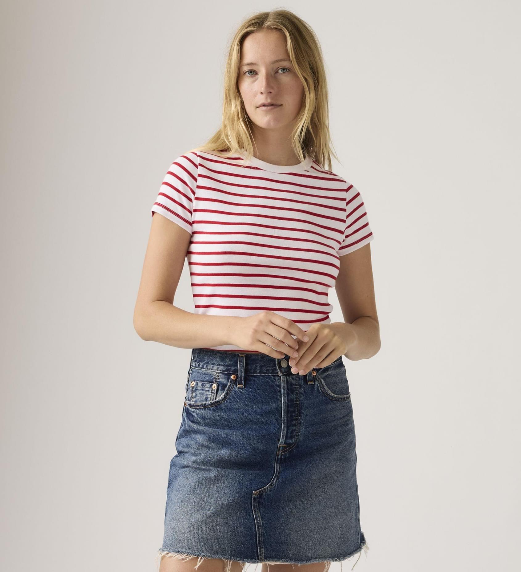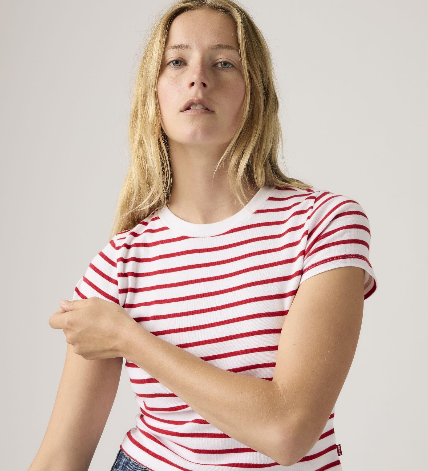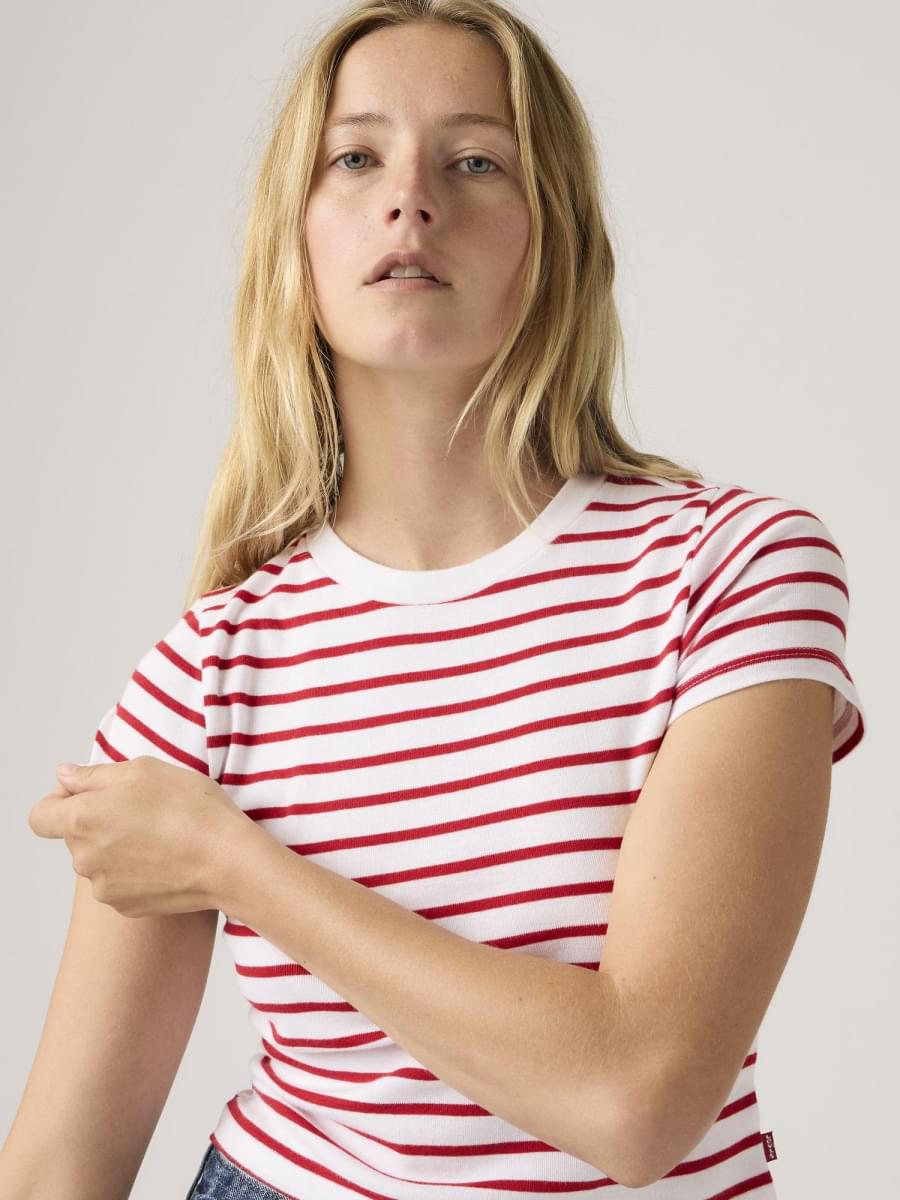 Clássicos como a nossa Essential Sporty T-Shirt nunca saem de moda. Concebemos este modelo com uma gola subida ultra favorecedora e um corte cropped ajustado — finalizado com a nossa icónica red tab.