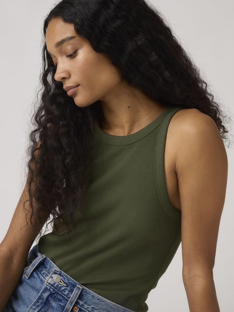 Os clássicos como a nossa Essential Racer Tank nunca saem de moda. Fizemos esta com um decote redondo atemporal e um corte ajustado—tudo rematado com a nossa icónica patilha vermelha.