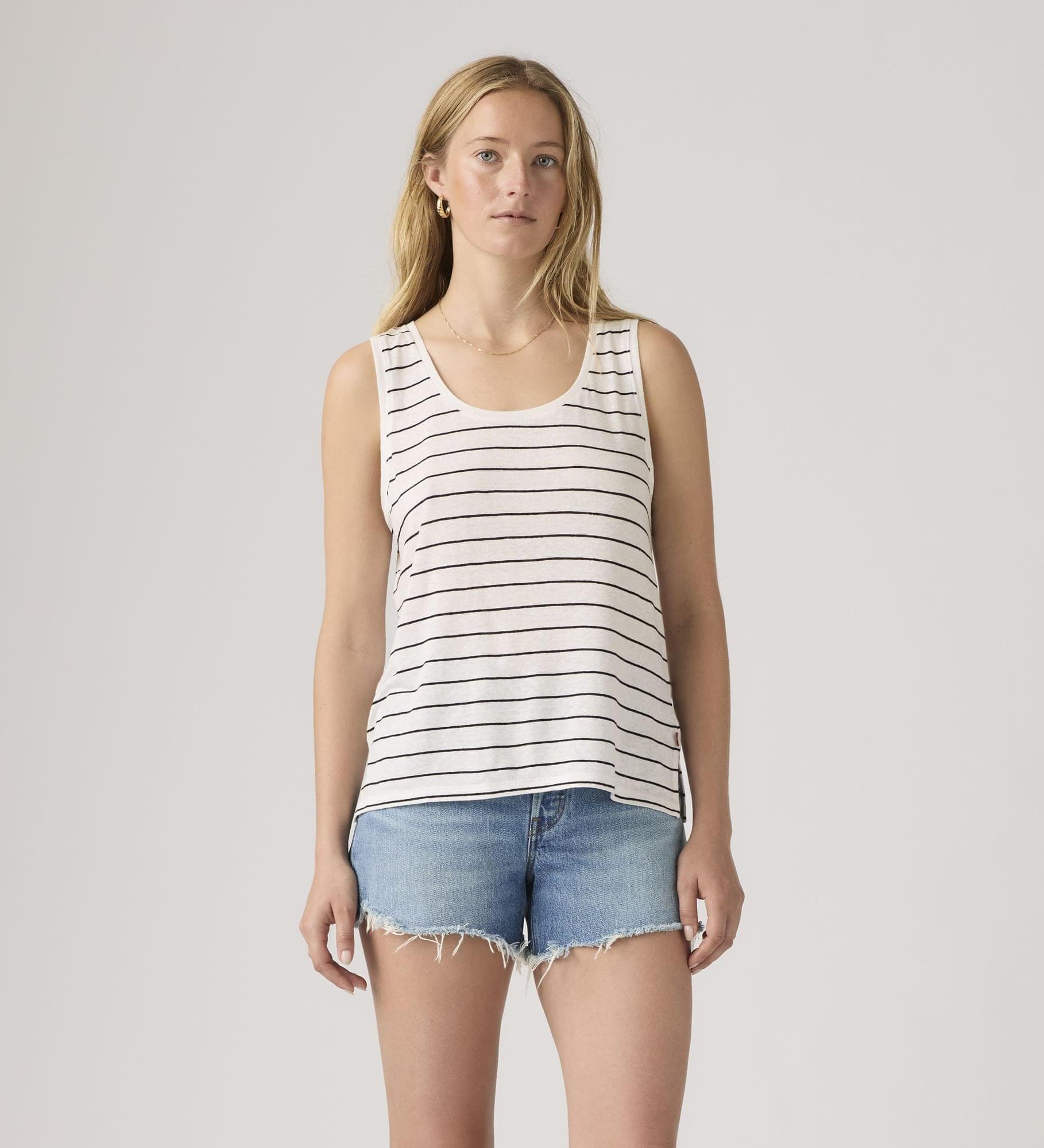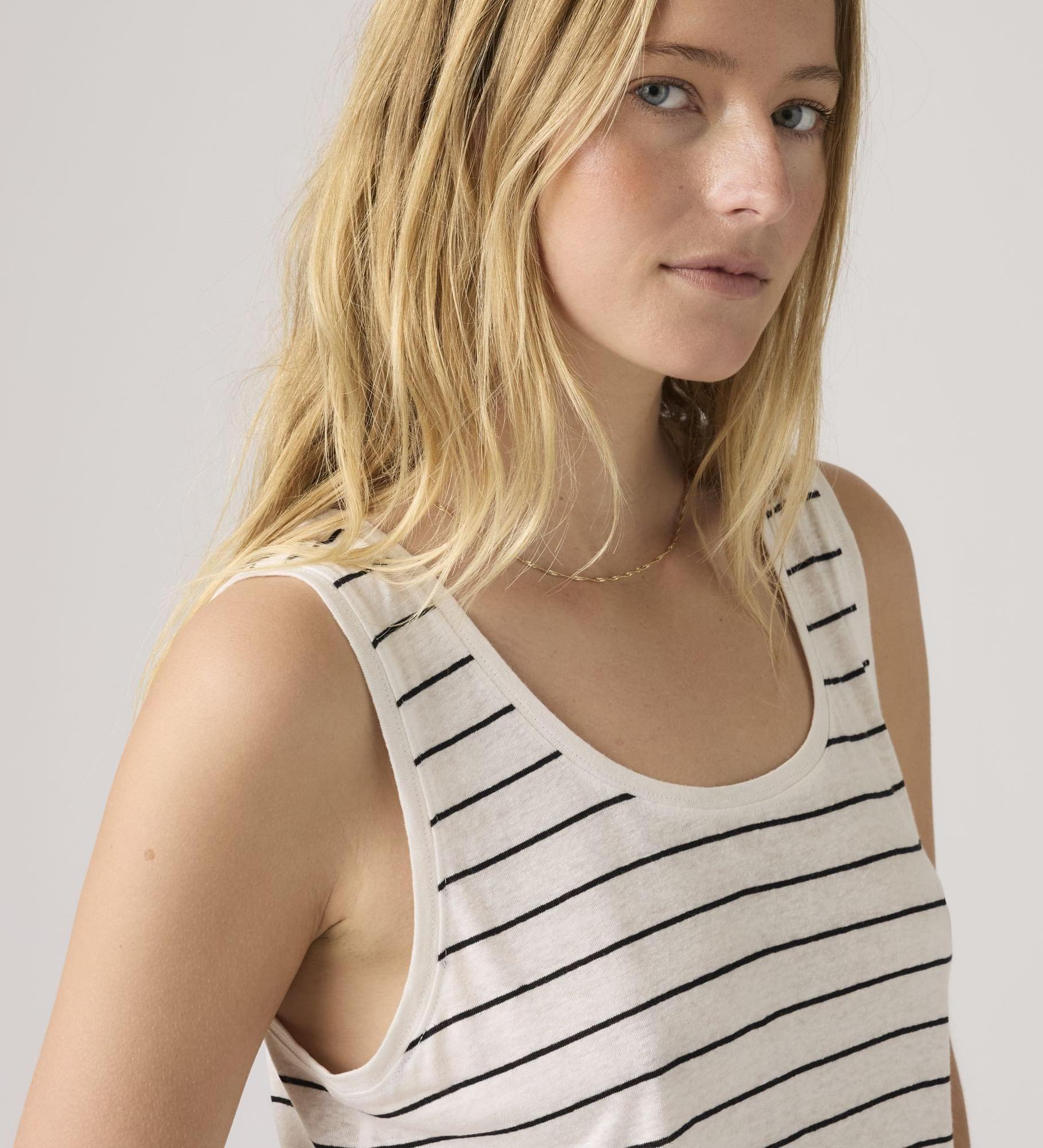 Leve, respirável e fresca. Assim é a nossa Lori Linen Scoop Tank — concebida com decote redondo, um corte clássico padrão e tecido leve.