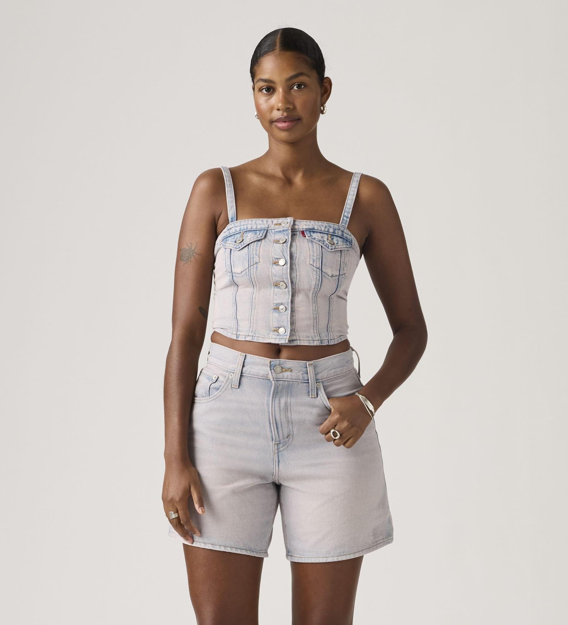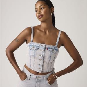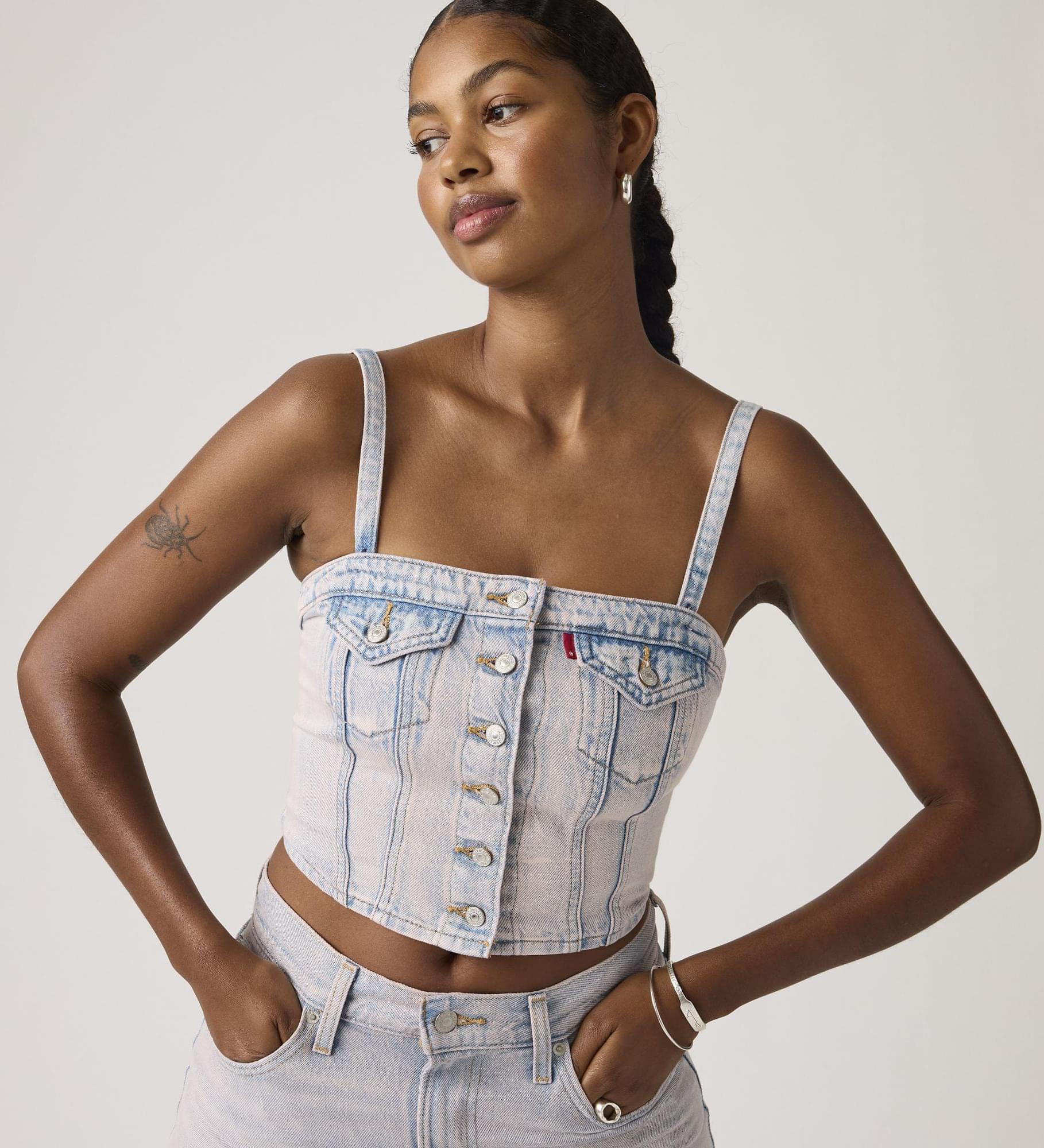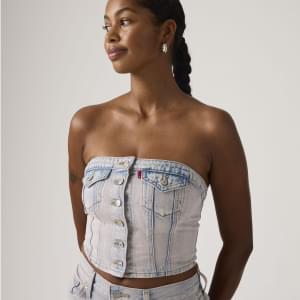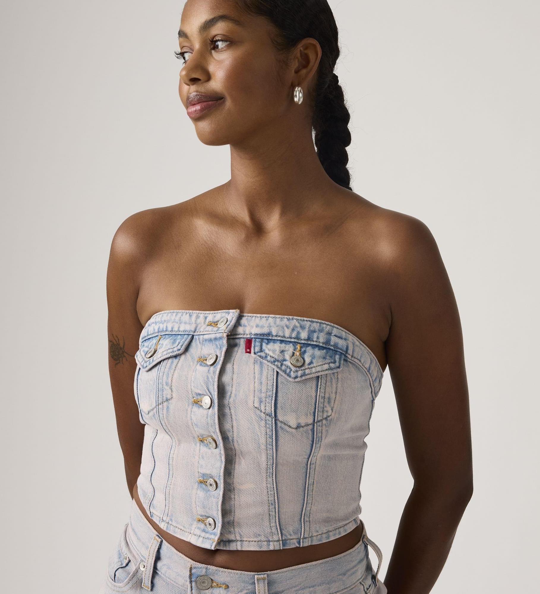 Sem alças, sem problema. O nosso Denim Tube Top é confecionado com um corte justo ultrafavorecedor e mantém-se no lugar durante todo o dia.