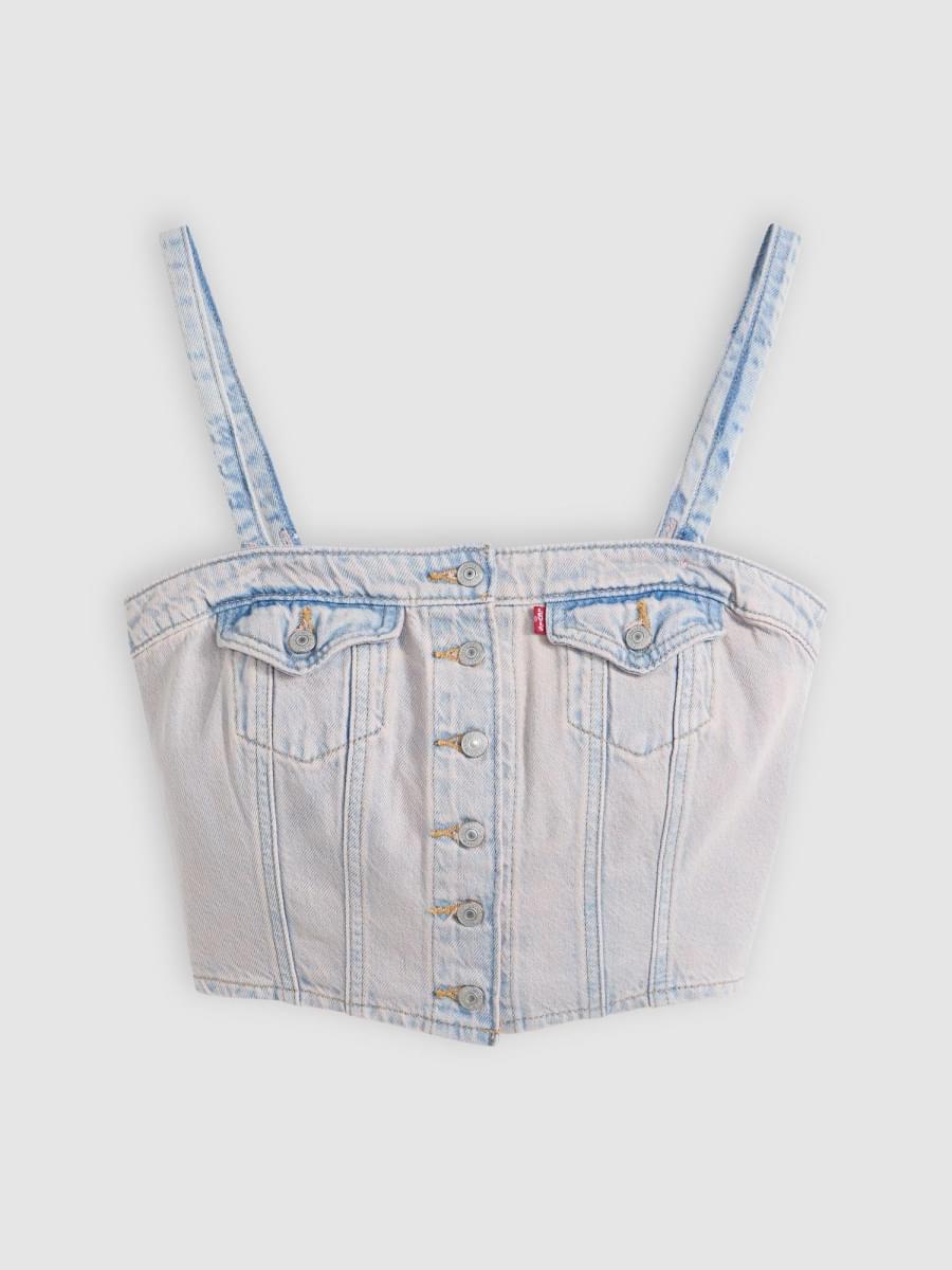 • Um top de tubo em denim