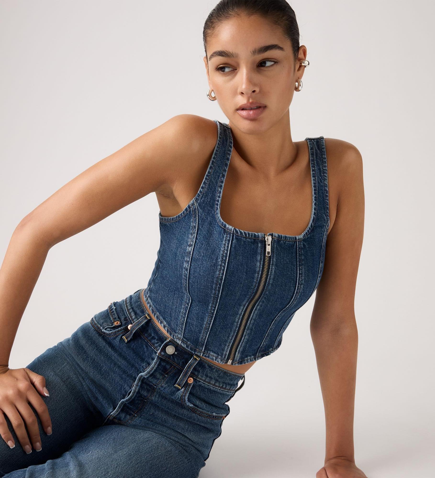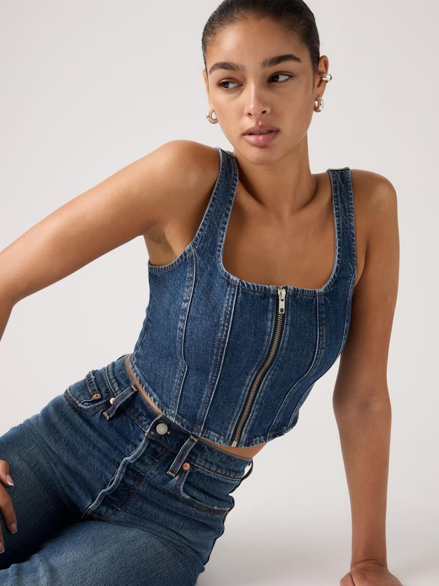 Seamed Zip Bustier Top