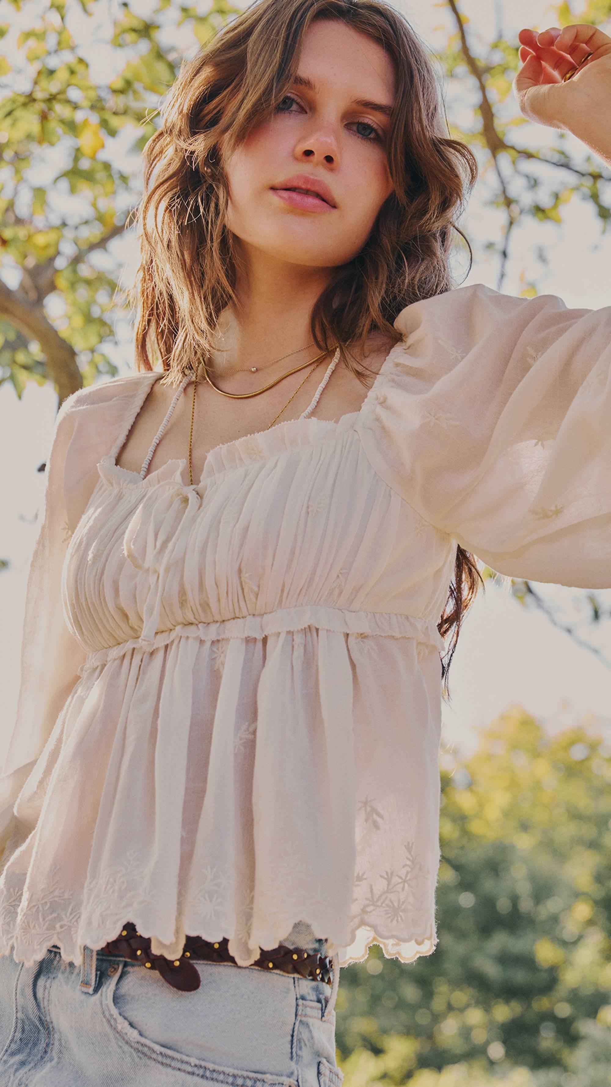 Uma peça versátil e doce, perfeita para usar sozinha ou por cima de uma baby tee.